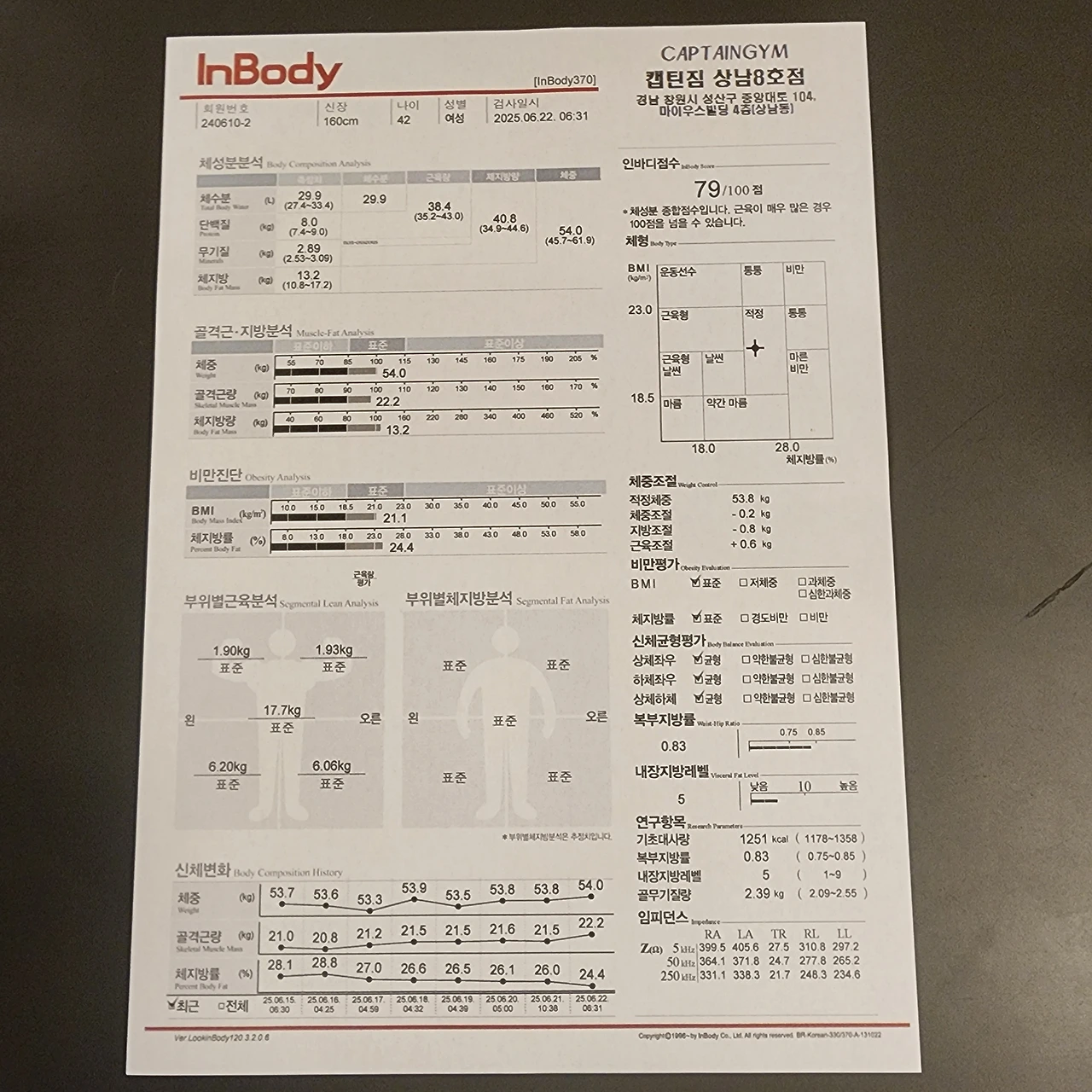 그나마 인바디 점수가 좋아졌지만 그건 체내수분이 근육량으로 잡혀서 그렇다는 글을 다신앱에서 본 기억이 난다