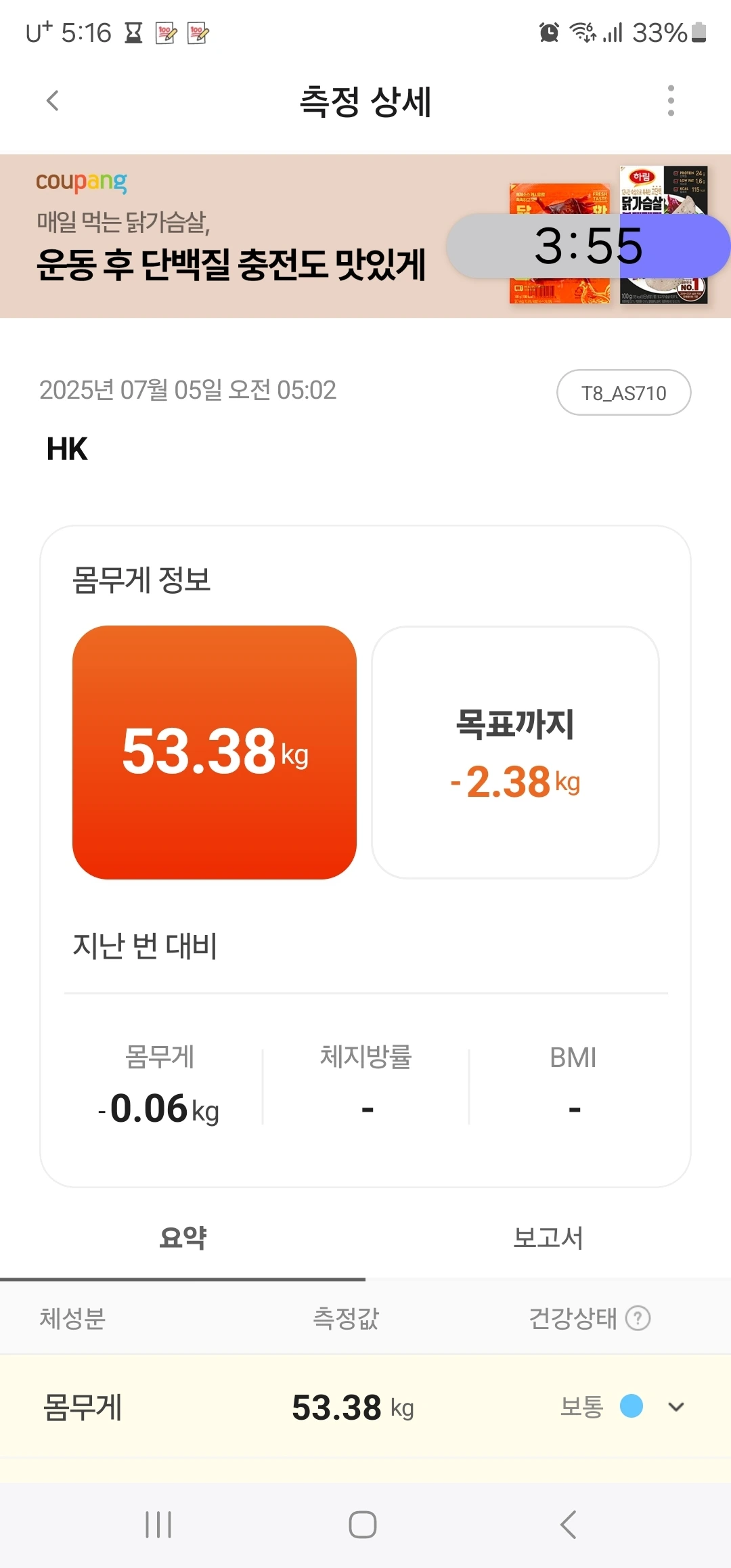 짐에서 인바디를 재어야 더 정확한 상태를 알수 있겠지만