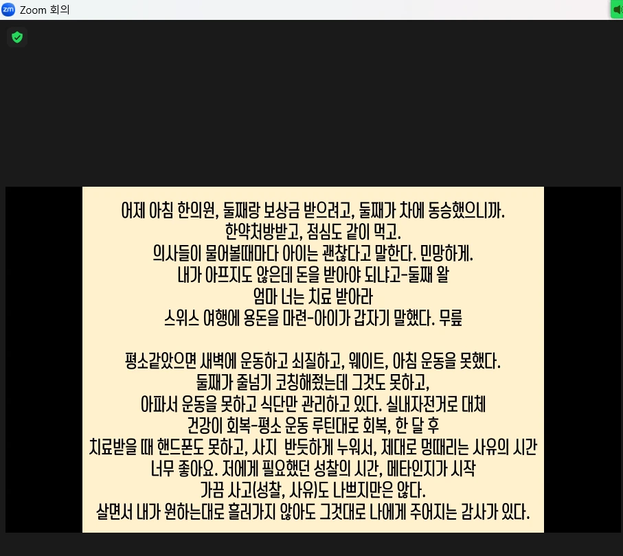 몸을 돌보기 위해 글을 쓰기 시작했는데
