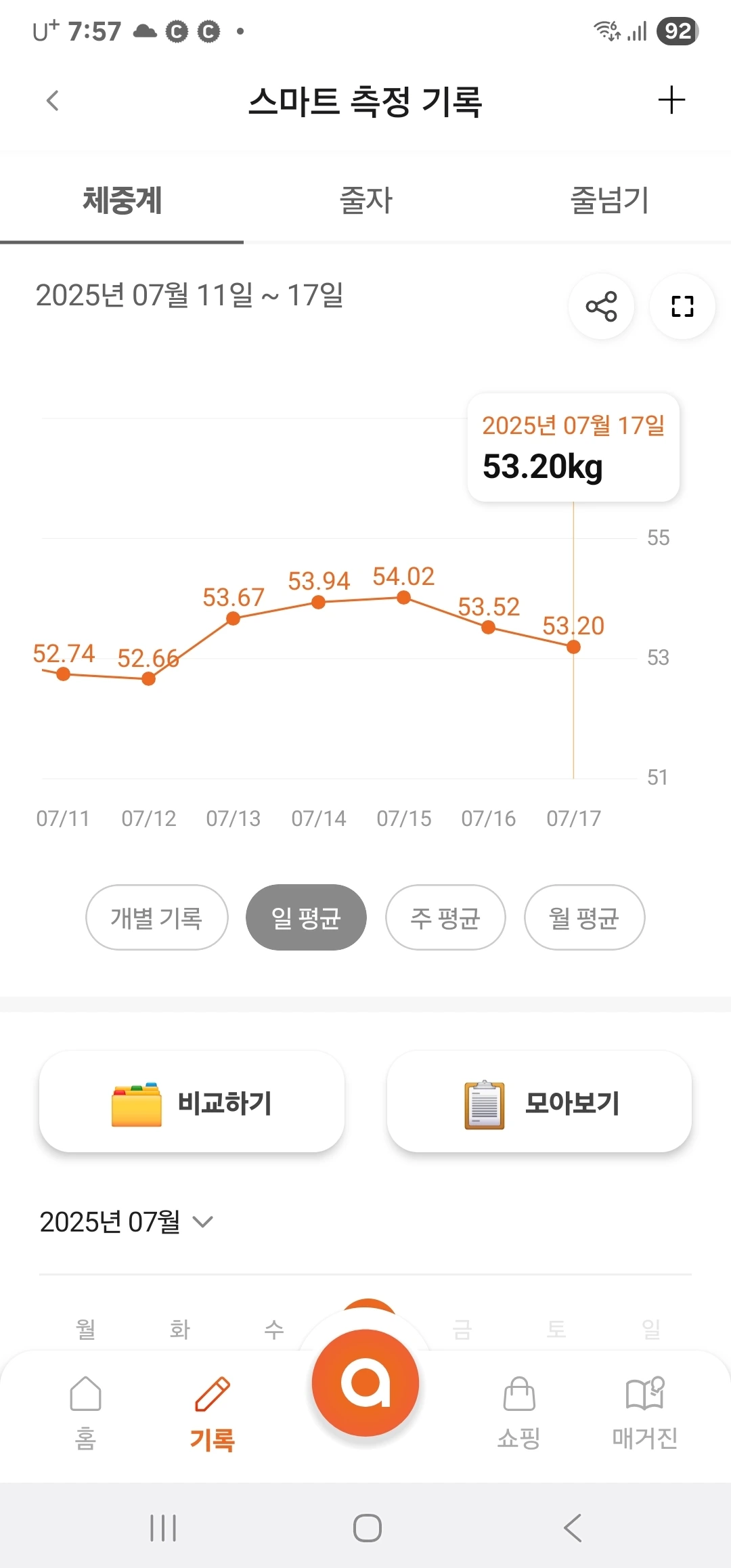 그래도 체중이 내려가니 기분이 좋다