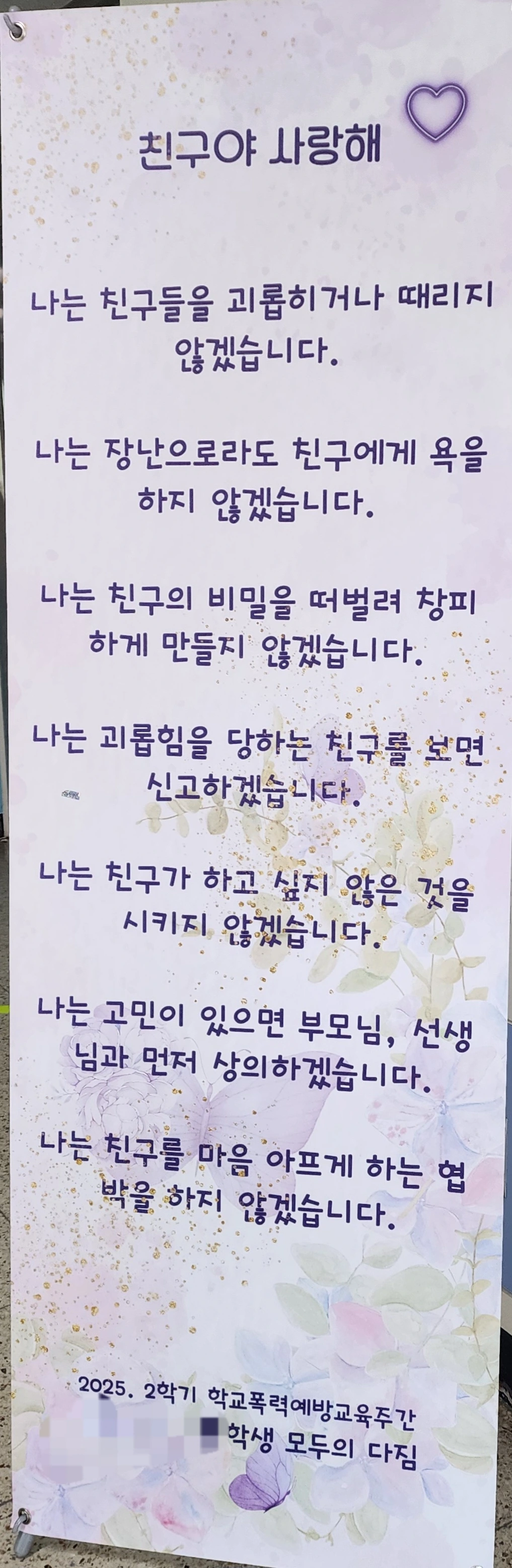 전교생에게 나누어준 마음카드와 학생의 다짐