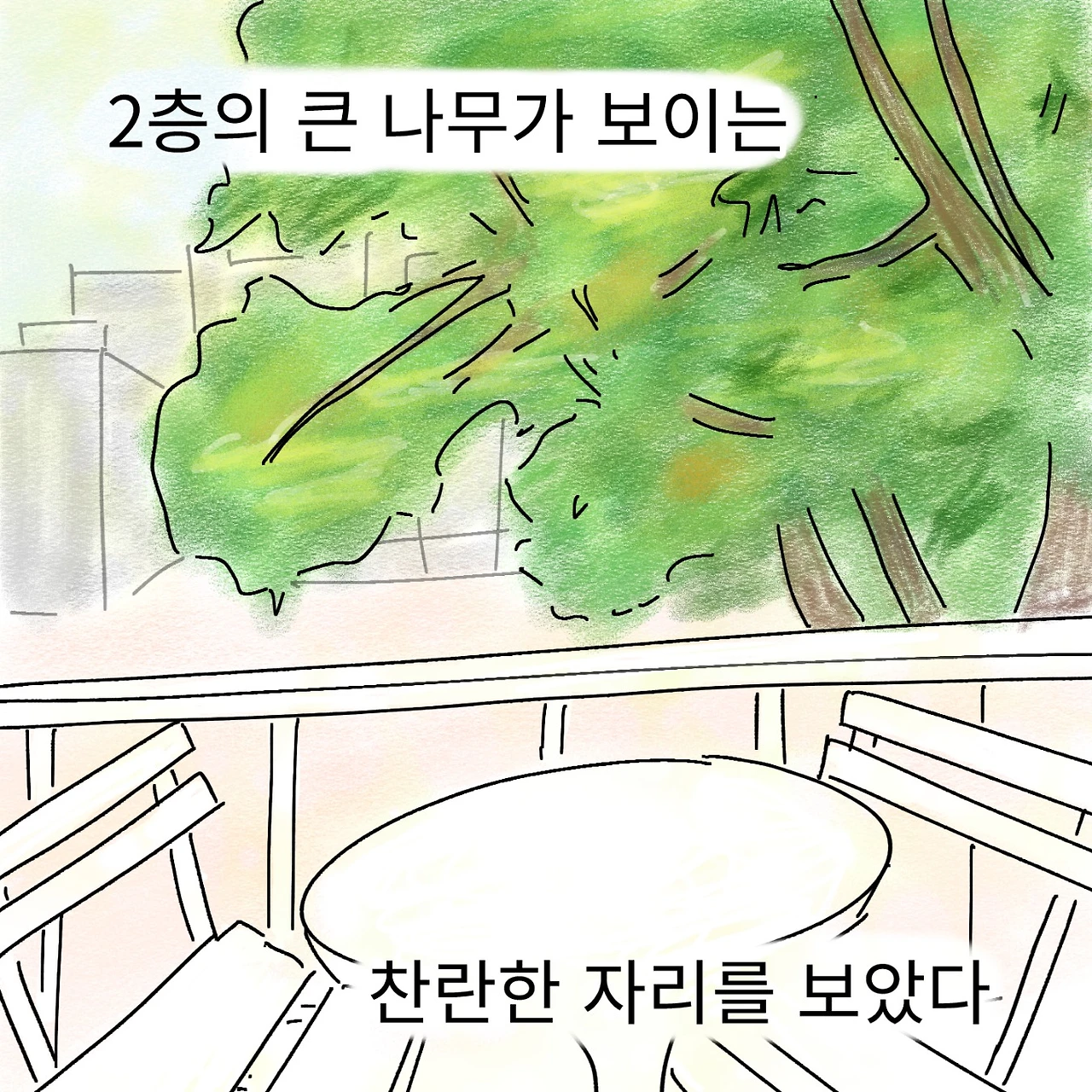그리고 바깥의 가을 경치를 있는 대로 누릴 수 있는, 축복받은 한 빈자리를 발견했다.