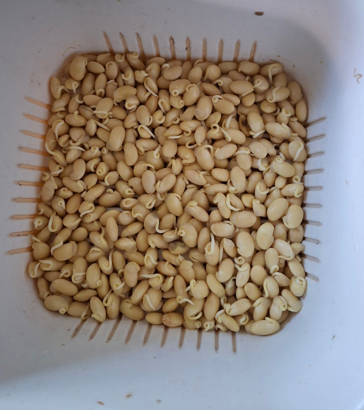 콩을 불린 지 사흘째 순이 자라고 있네요