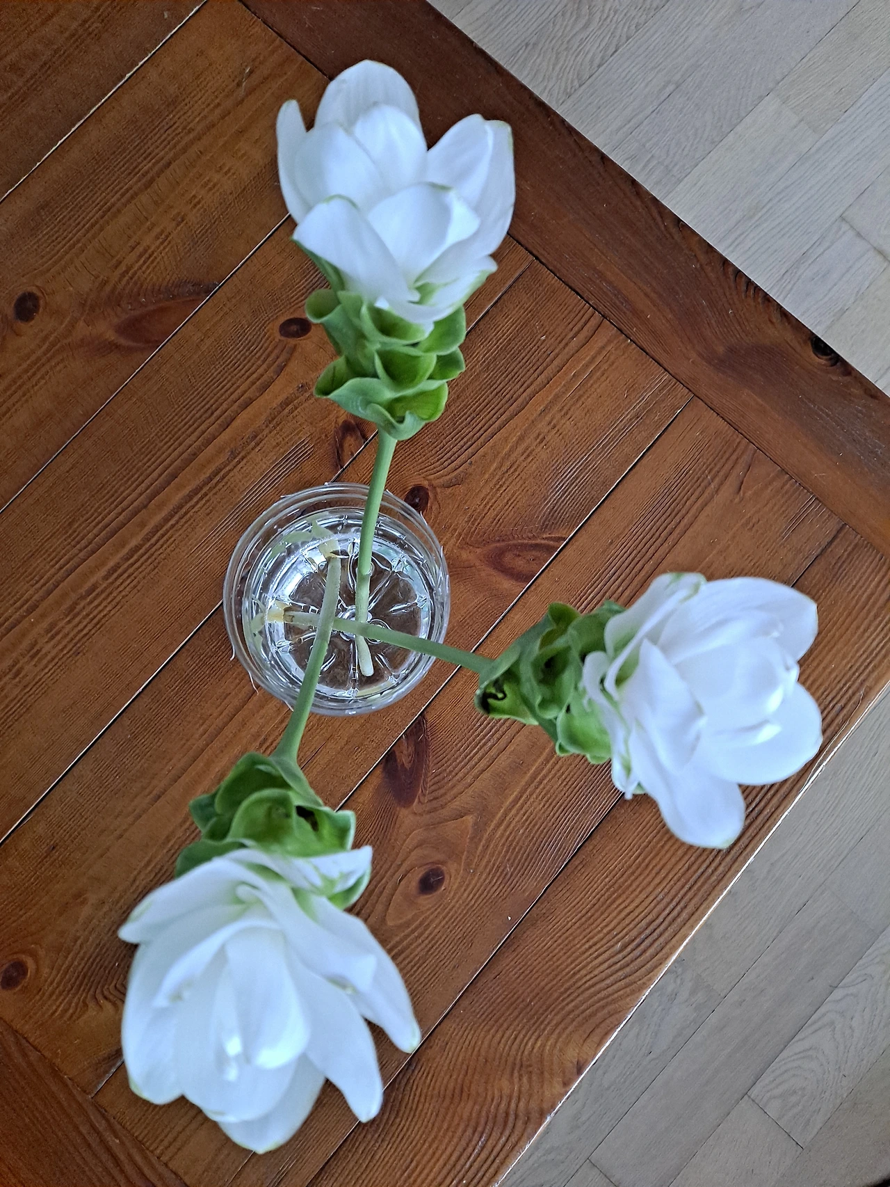 오늘 타 부서 직장동료가 아침 일찍 내 사무실로 와서 "김영미, 얼른 와!"라고 한마디를 던지고 가버렸다. 대여섯 살 어린 동료인데 진즉에 내 마음을 읽어버려서 대놓고 깡패짓이다. 목청껏 제멋대로인 듯 하지만 퇴근길에 차창을 열고 걸어가는 내 뒤통수에 "김영미!"라고 하면서 손을 흔들고 지나가는 정 많은 친구라 내가 애정하는 친구다. 그런 친구가 오라고 하니 열일 제쳐놓고 따라갔다. 그곳엔 이미 몇몇이 모여있었다. "얼른 오라니까, 예쁜 건 먼저 온 사람이 다 차지해 버렸잖아!"라고 말하면서 꽃을 내밀었다. 처음 보는 꽃이라 이름을 물었다. 아무도 그 꽃의 이름을 아는 이가 없었다. 사무실에 두고 보고 싶었으나 주말이라 집엘 가져와서 보고 또 보고 볼수록 예쁘다는 생각을 하면서 꽃을 준 그 친구를 생각하고 있다.