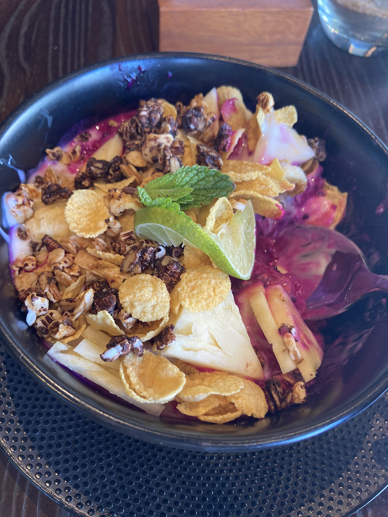 아침은 용과 스무디볼을 먹었다. 라떼와 함께.