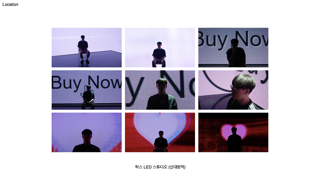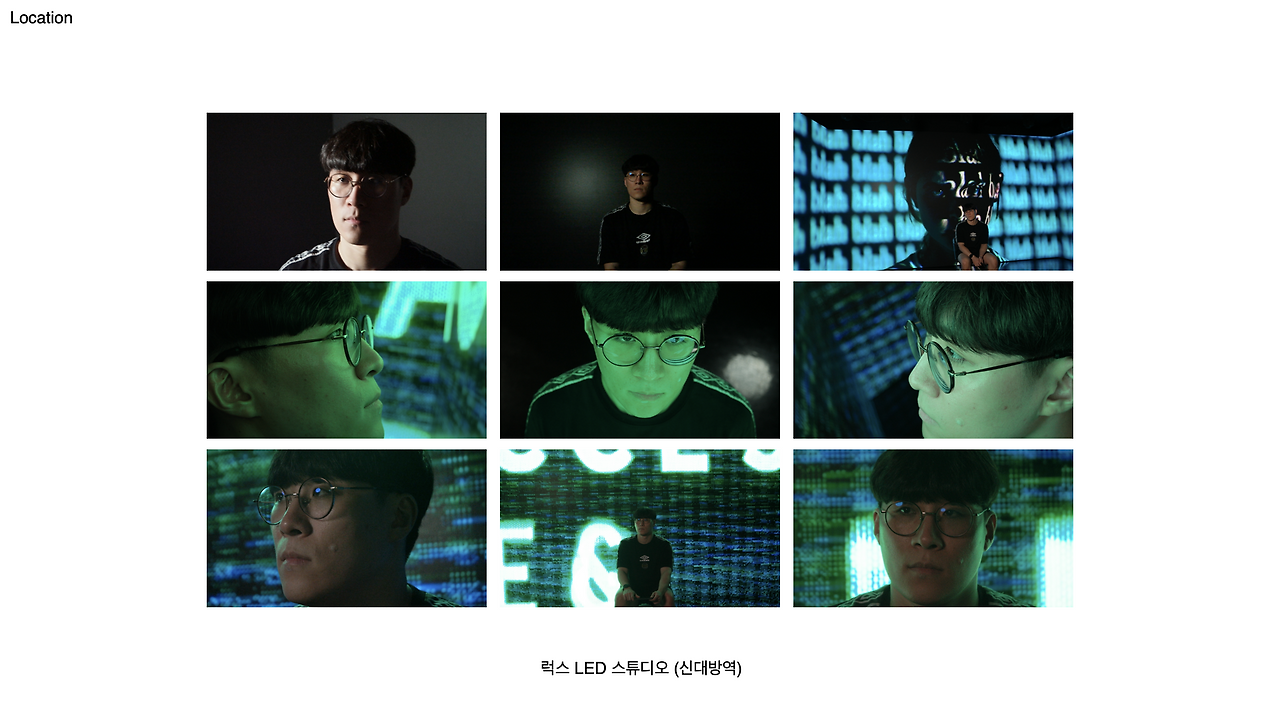 그렇기에 인물의 대사에 맞춰 디지털 샤이니지가 변하는 연출이 매우 중요했다. 해서 로케헌팅 때 미리 예시용 스톡영상을 가져갔는데, 이게 매우 최고의 예행연습이 되었다. 인물의 위치와 화면 위치가 맞지 않다는걸 알았고 이를 오조준하여 촬영시 맞춰야함을 빠르게 알 수 있었으니 매우 전략적 판단이 섰던 것이다. 또한 생각보다 협소한 로케다보니, CU컷에서 카메라 각이 조금만 벗어나도 바로 화면에 LED가 아닌 빈 공간이 나와버리니 실제 촬영 전 각에 대한 피져가 바로설 수 있었다.