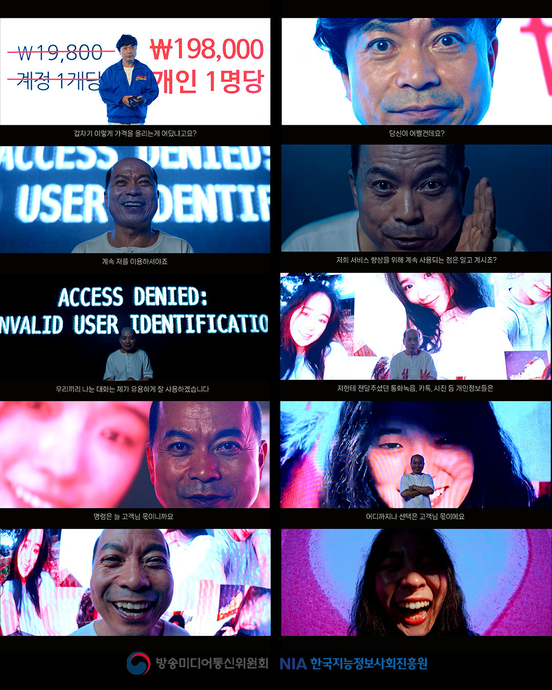 이미지 대조를 통한 경각심을 주기 위해선 1020 타겟시청자의 머릿속 어렴풋 형성된 또래 이미지를 전복시킬 이미지를 가진 배우를 캐스팅했다. 능구렁이같은 뻔뻔함으로 이용자를 구워삶을 것 같은 중년남성 이미지를 가진 이관영 배우님께 연락을 드렸고, 흔쾌히 출연해주셨다. 또한 1020 시청자를 대변하는 주인공이 좋아하는 이성역할은 1020의 네츄럴함과 풋풋함, 그리고 무표정의 드라이함이 함께 느껴지는 이미지가 필요했다. 그래서 여배우 캐스팅에 꽤 애를 먹었다. 처음엔 주변사람들에게 탐문해봤지만 명확히 일치하는 이미지가 없어 촬영 일주일전까지 역할이 비어있었다. 해서 지푸라기를 잡는 심정으로 오랜만에 필름메이커스에 들어가 배우프로필을 스킴했고 우연찮은 클릭으로 수현 배우님을 발견했다. 거절하더라도 설득하고 싶다는 떨리는 마음으로 DM으로 연락 및 기획서를 전달드렸는데, 천만다행으로 흔쾌히 출연을 수락해주셨다. 이후 킥오프 미팅을 진행한 결과 실력이 출중하셔서 '이제 나만 잘하면 된다'의 단계로 접어들 수 있었다.