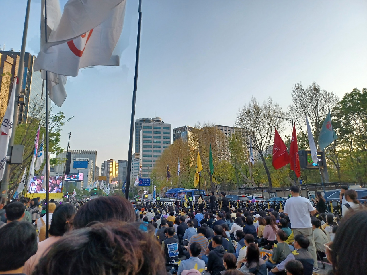 시청 앞, 덕수궁과 광화문 근처. 이런 곳들은 도저히 눈 뜨고 보기가 힘들어서 뭐라도 해야겠다 싶어 집회에 나갈 때나 주로 개인적인 일로 스트레스 받아서 하염없이 걷고 싶을 때 찾던 곳이었다. 가끔 아스팔트 위해 앉아서 구호를 외치고, 종종 아스팔트 위를 걸으며 열을 식히던 곳. 그곳에 방문하는 나의 목적이 달라져서 인지, 압도적 의석수의 차이로 야당이 여당을 이겨서인지 이태원 참사 시민 분향소가 새삼스레 눈에 띄었다. 나는 종종 혹은 가끔 찾던 그곳에 그들은 계속 있었구나, 하는 생각이 아프게 박혔다.