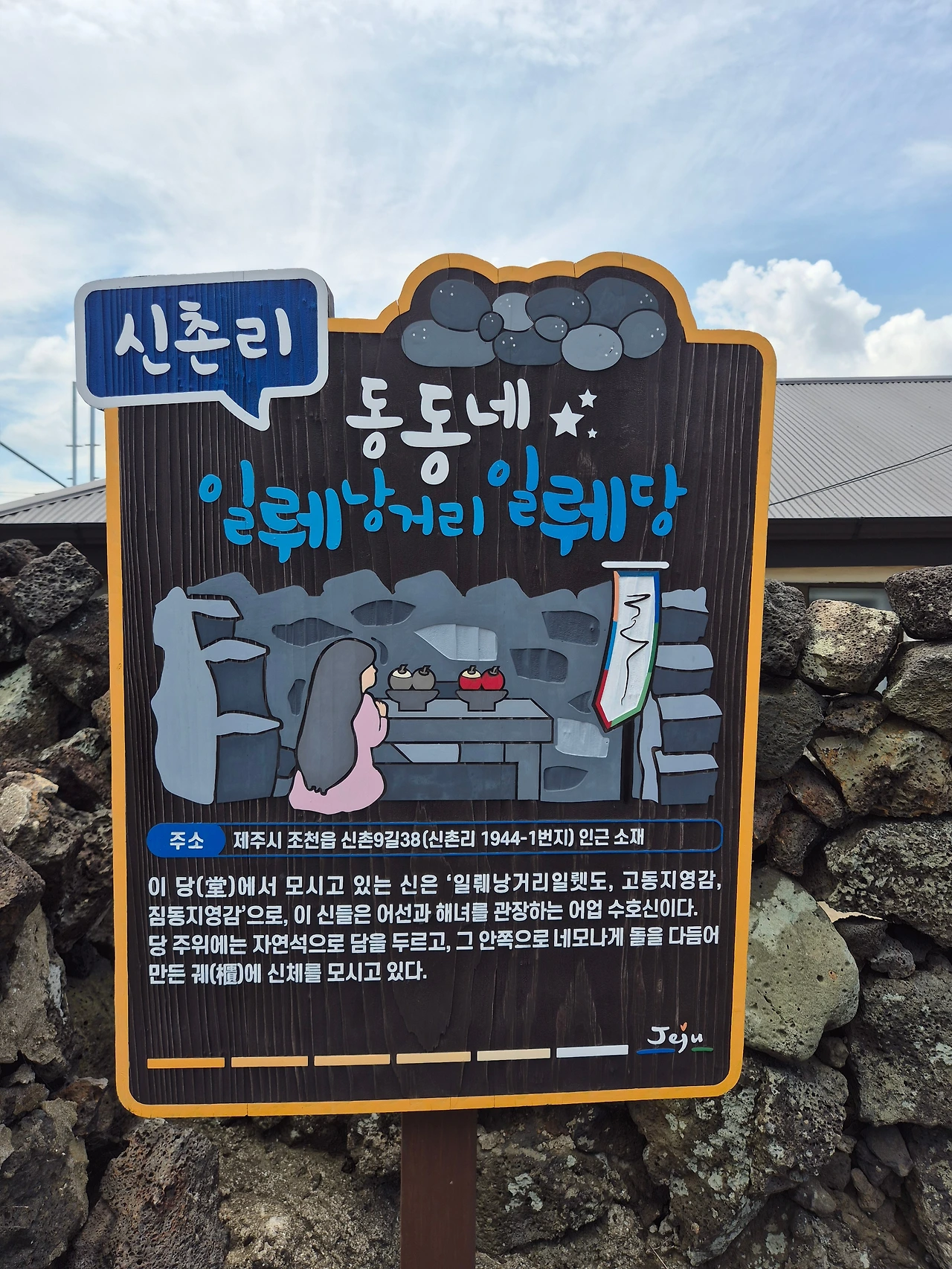 제주의 신당은 대부분 마을 설촌의 역사를 간직하고 있다. 본향당을 중심으로, 현재까지도 마을 공동체의 구심점이며, 정신적 뿌리로 자리한다고 한다. 당을 둘러싼 커다란 나무, 혹은 신이 좌정하고 있다는 신목들이 고요하고 신비한 분위기를 자아낸다. 엄숙하고 위엄이 느껴졌다. 신새벽 이슬을 밟으며 당을 찾아와 두 손을 모아 가족의 안녕을 빌며 눈물 흘리고 한숨 지었을 제주 어머니들의 모습이 그려진다.
