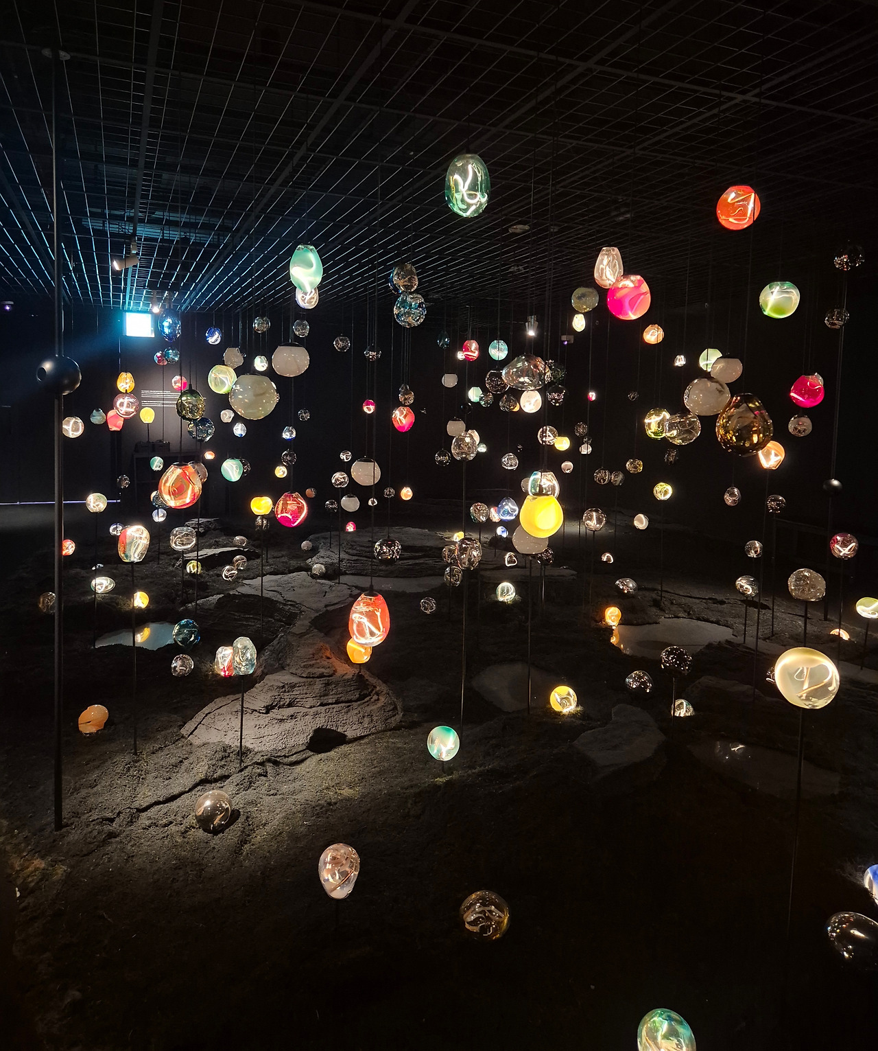 “숨이 막혀 죽을 것 같아”, “숨이 끊어졌다.”, ‘목숨“ 줄줄이 떠오르는 숨의 언어들. '숨'은 가장 연약하지만 동시에 우리를 살아있게 하는 가장 강한 것이기도 하다. 숨 막히는 현실을 딛고, 자신의 상처를 어루만지며 숨을 불어넣어 만든 유리 전구에 나의 숨이 가닿아 같은 공간을 빛으로 채우는 시간. 그때 나는 그와 다른 사람이 아니다. 같이 공생하고 조화를 꿈꾸는 우리가 되었다. 숲의 나무들처럼 빛의 길을 내는 존재가 되었다. ‘살아라 살아라 같이 살자 어기야디야’ 외치는 응원의 소리, 빛의 소리가 들리지 않는가. 눈이 어느새 화끈해지더니, 비 맞는 가로등처럼 전구들이 흐릿하게 보이는 그 자리에 한참 머물다 나왔다.