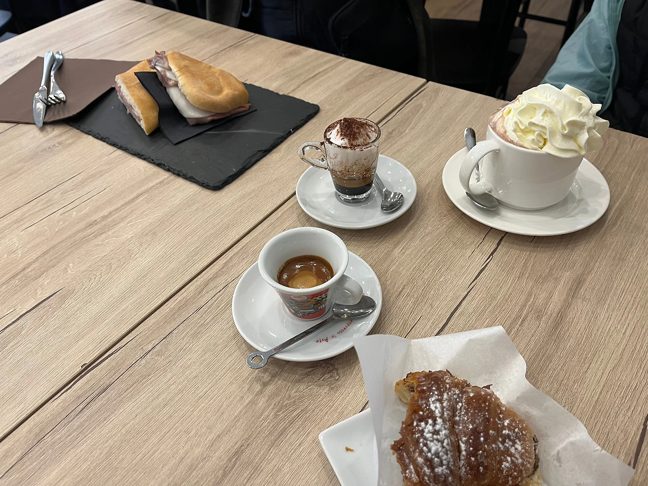파니니에는 햄과 치즈만 들어 있었지만, 바삭한 빵과 짭조름한 햄, 고소한 치즈가 입안에서 어우러졌다. 단순하지만 완벽한 조합이었다. 커피는 내 취향과는 조금 달랐지만, 이곳에서의 친절함과 정성만으로도 충분히 특별한 아침이었다.