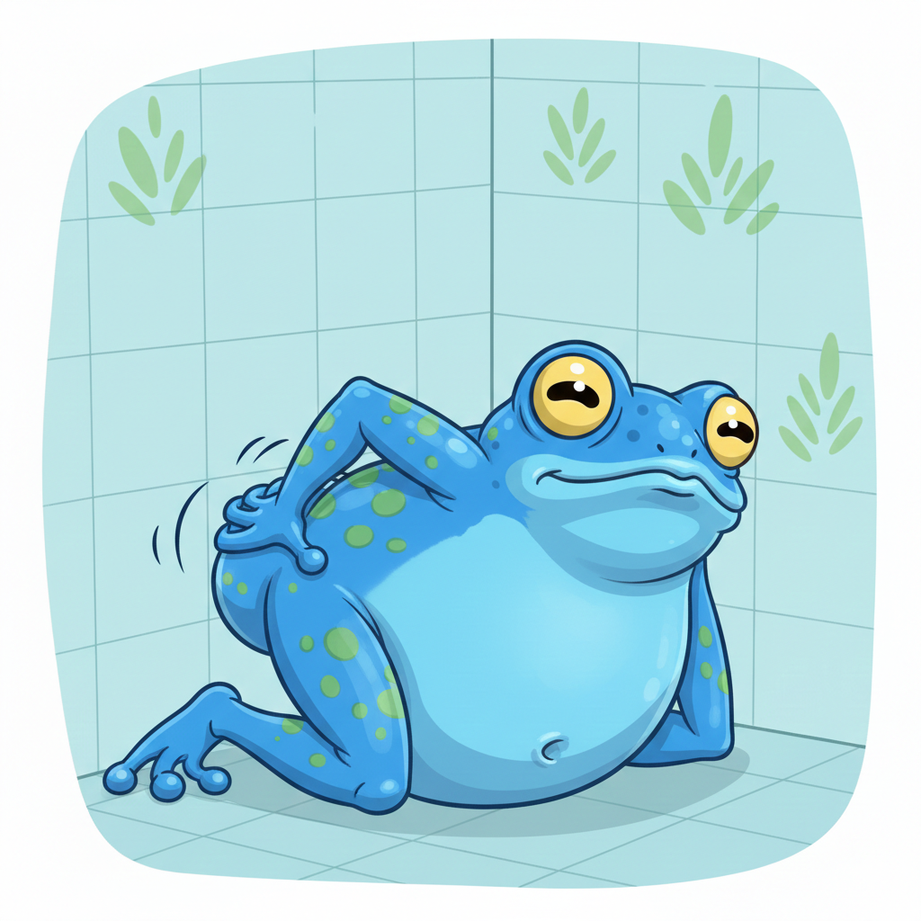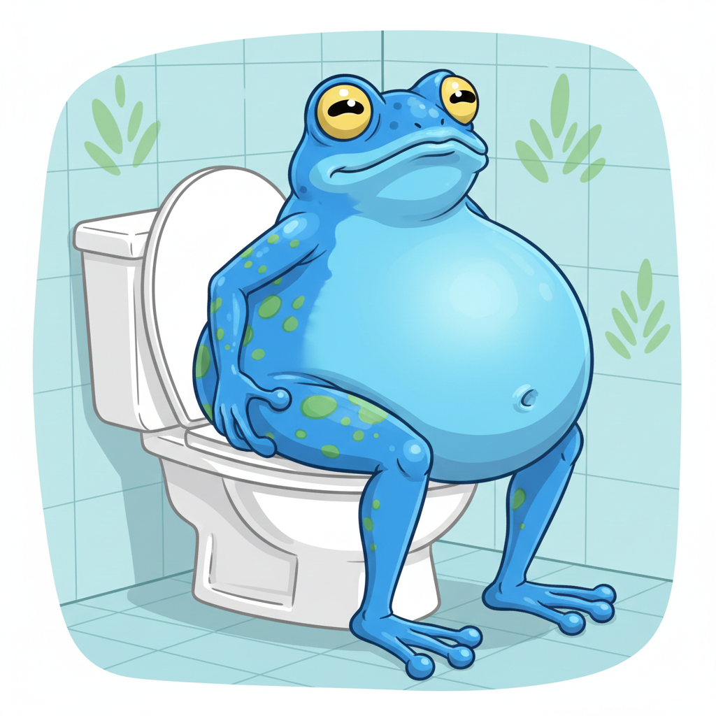 아니 말같은 건 필요없고 파란 개구리 한마리 배를 잔뜩 불리는 사진 개구리 손은 자기 엉덩이 잡고