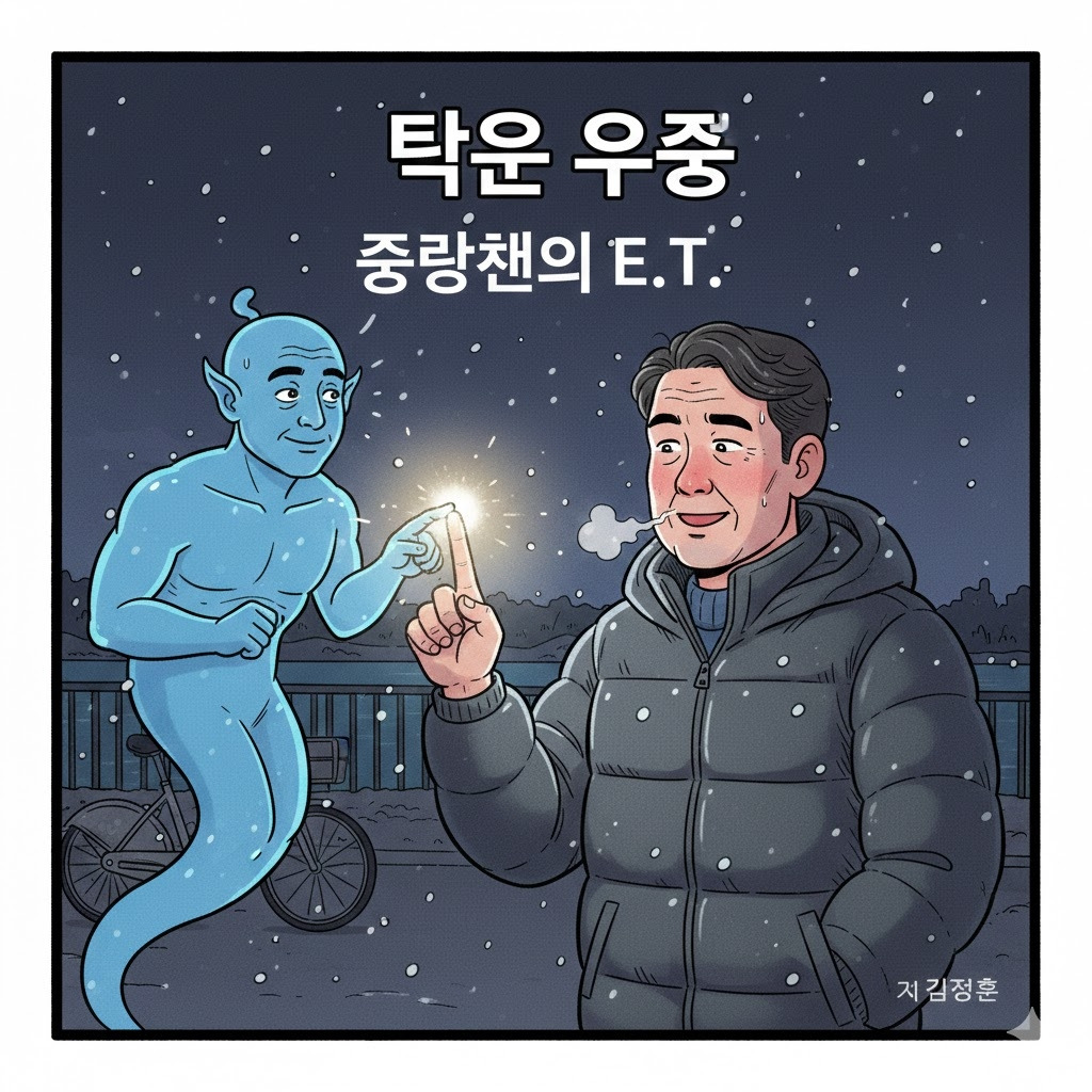 추운 겨울 중랑천 따릉이 대여대에서 나를 알아본 것에 놀랐다.