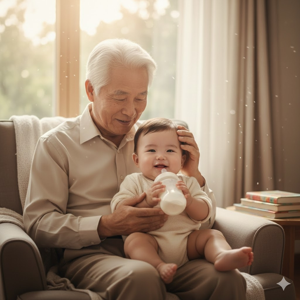 며느리는 손주와 할아버지가 친해지게 하기 위해 분유를 타서 내게 먹이게 한다.
