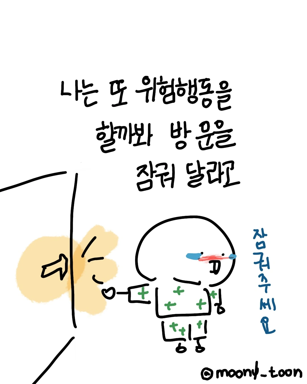 방 문 좀 잠가달라고. 아니면 다시. 위험 행동 할 것 같다고