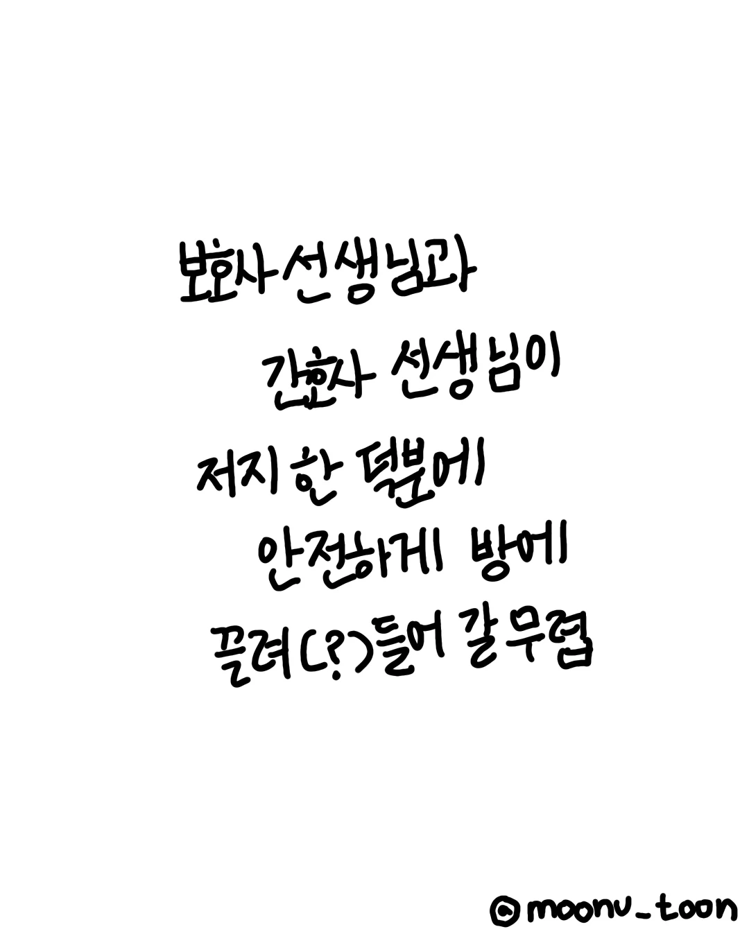 그러다 위험행동을 다시 하려 하였고, 보호사 선생님 간호사 선생님 덕분에 무사히 방에 다시 들어갈 무렵이었어요