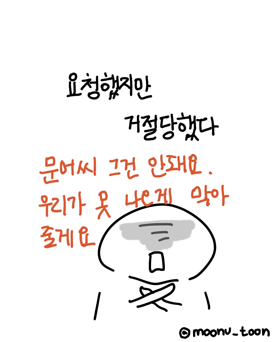 간호사 선생님께 울면서 재요청했을 땐 "못 나오게 막아줄 테니 방으로 들어가라"라고 하셨습니다.