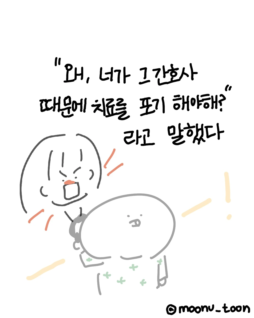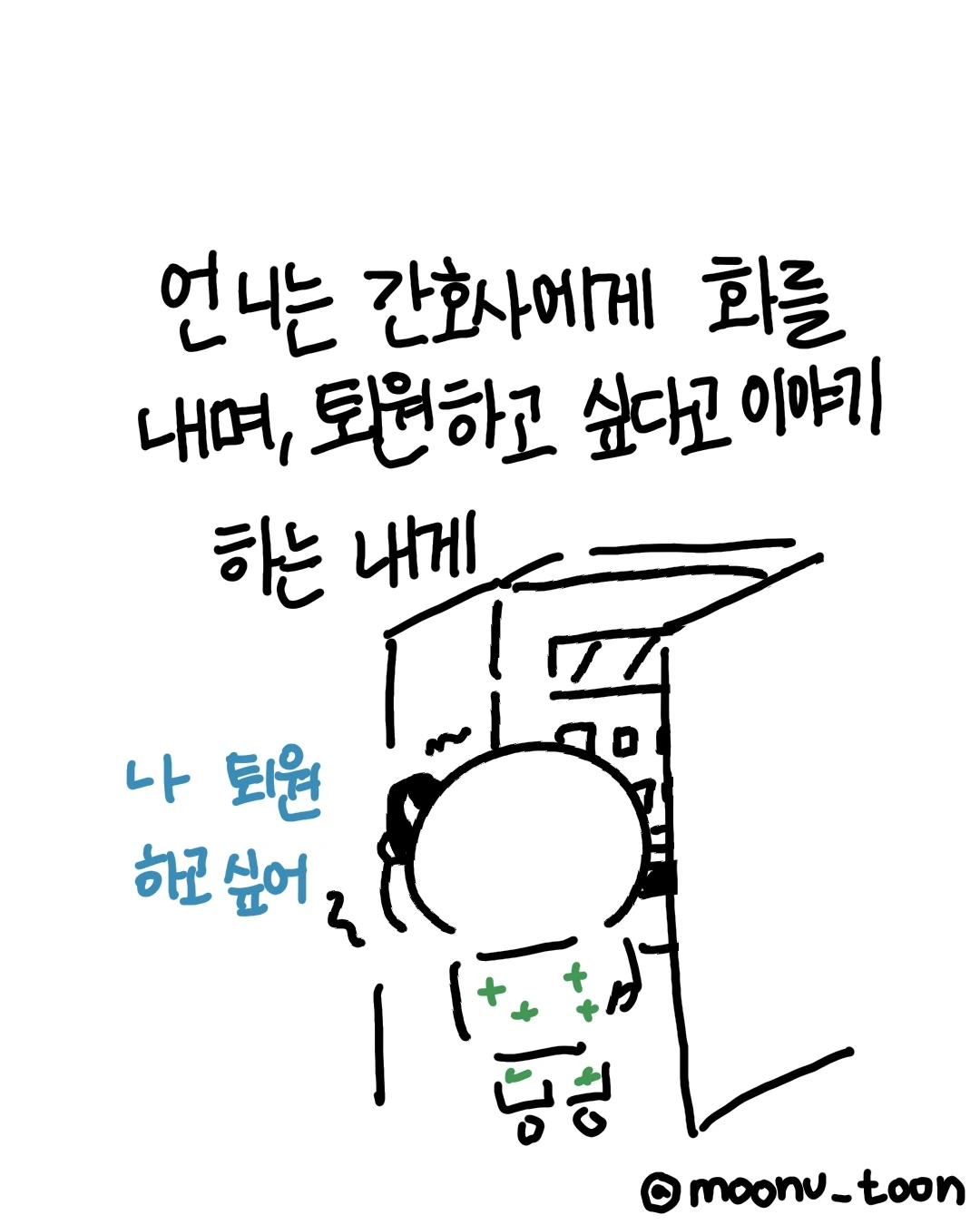 그리고 언니에게 울면서 퇴원하고 싶다고 하니, 언니는 간호사에게 화를 내며, 왜 네가 그 사람 때문에 퇴원해야 하냐고 말을 하는 거예요