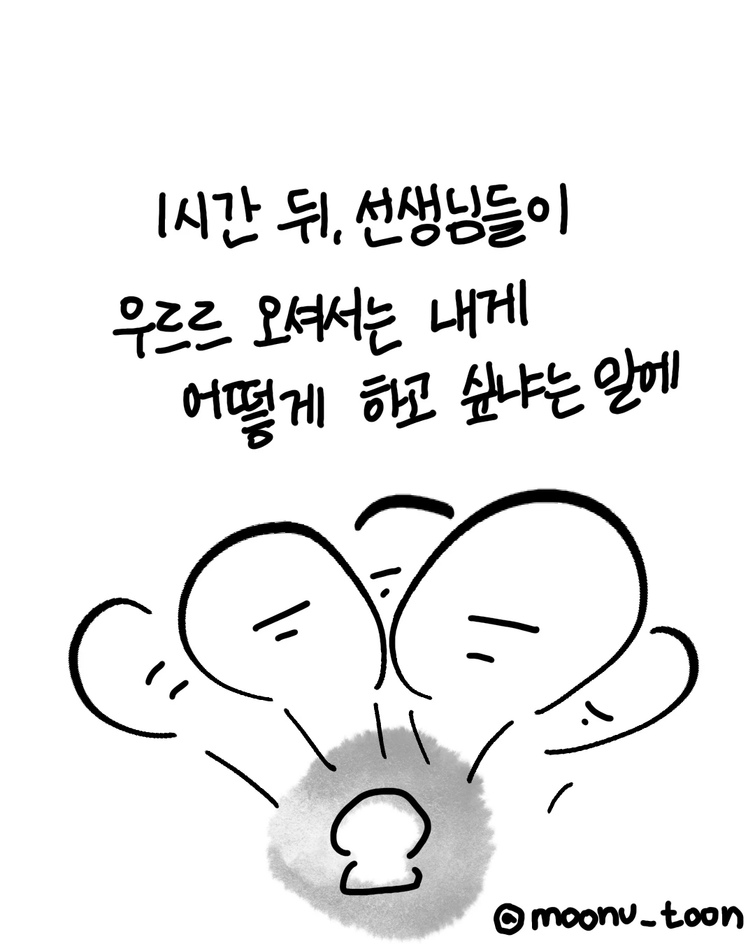1시간 뒤, 의사 선생님을 포함해 다 같이 우르르 오셨어요. 그리고는 머리도 산발. 옷도 정리 못한 제게 어떻게 하고 싶냐고 하셨고, 전 언니에게 전화하고 싶다고 했어요.