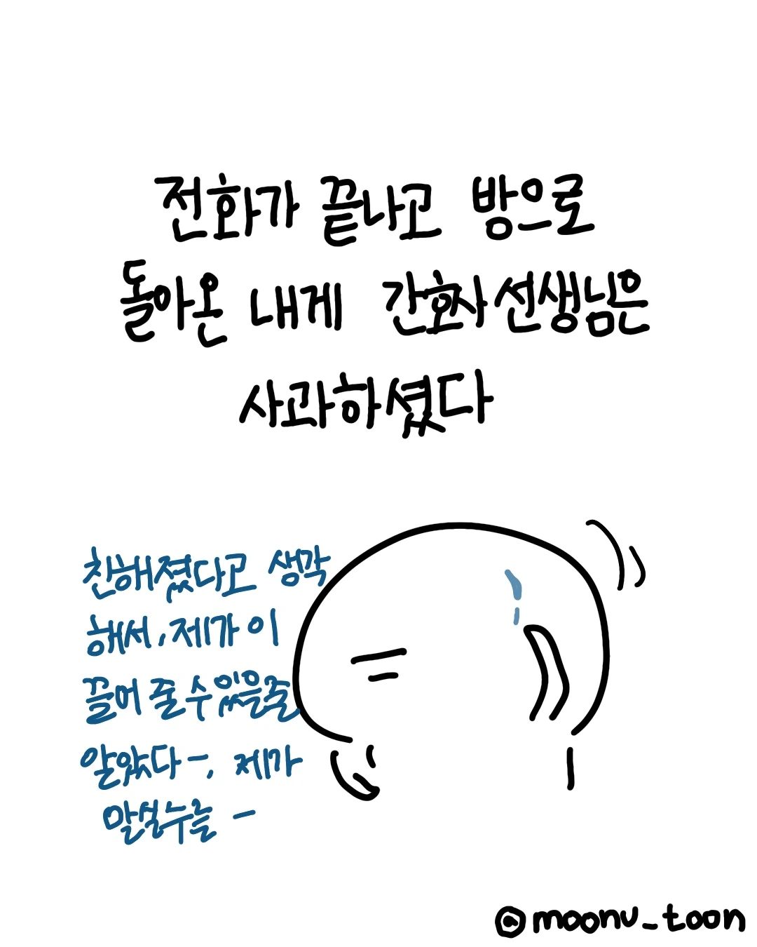 친해진 것 같아 간호사 선생님께서 이끌어 줄 수 있을 줄 알았다면서. 제게 사과하셨습니다.