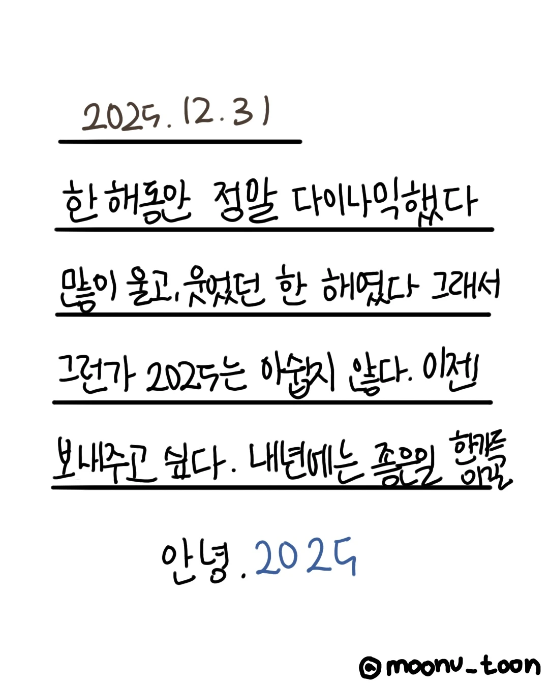 안녕하세요! 여러분 2025년의 마지막 날이 다 지나가고 있어요. 다들 어떤 한 해를 보내셨을까요?