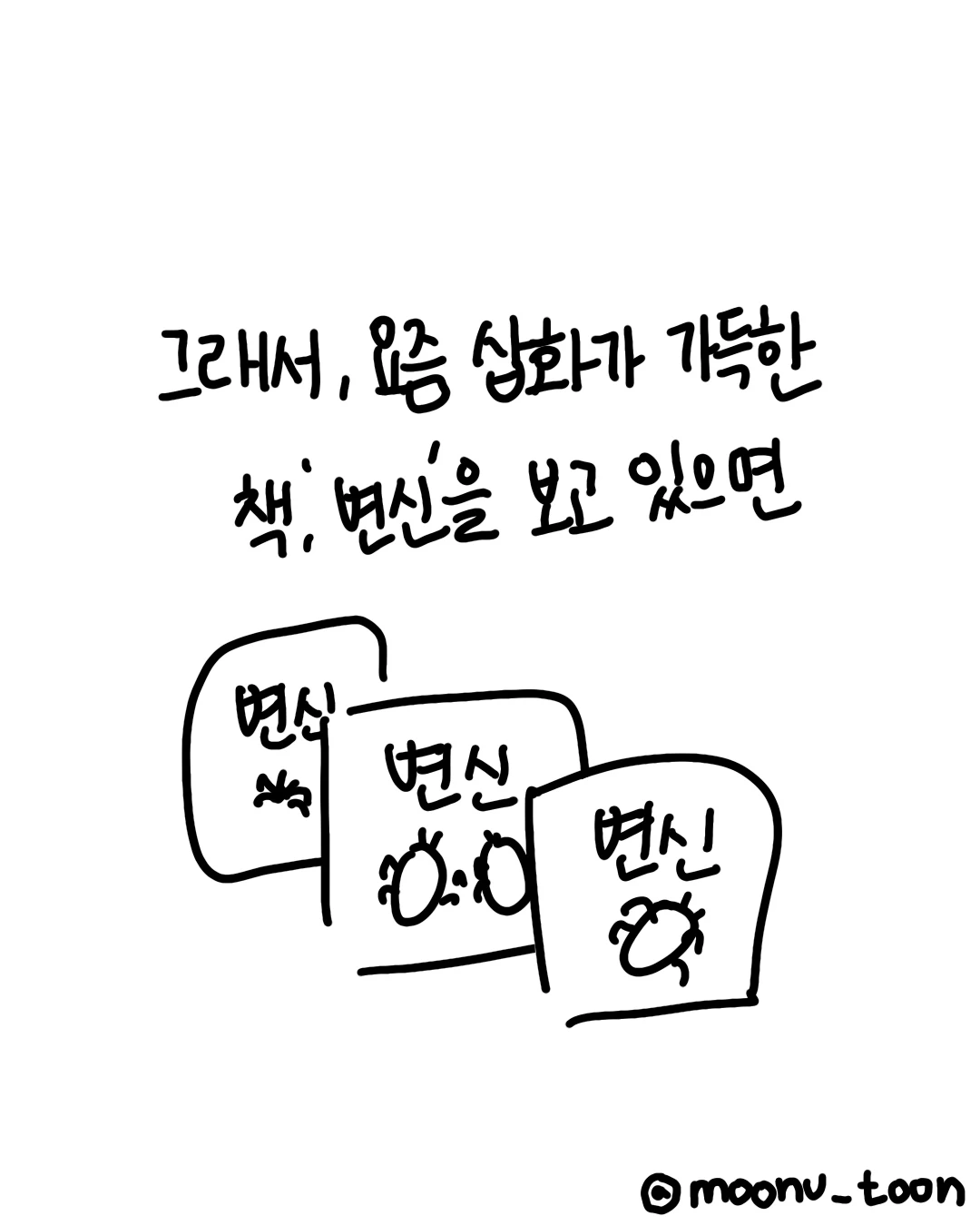 그래서 요즘 변신이란 책, 표지에 가득한 삽화를 보다 보면 아쉬움이 좀 남는 책인 것 같아요.