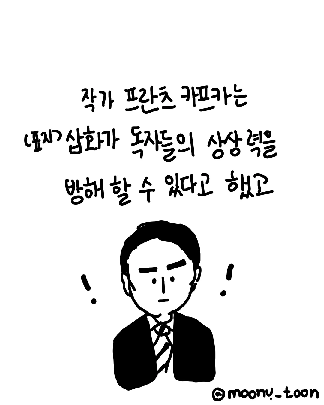거기에 프란츠 카프카는 표지에 삽화를 넣지 않았으면 했다고 해요. 그래서 제가 읽었던 책의 표지에는 삽화가 없었던 게 기억이 나네요.