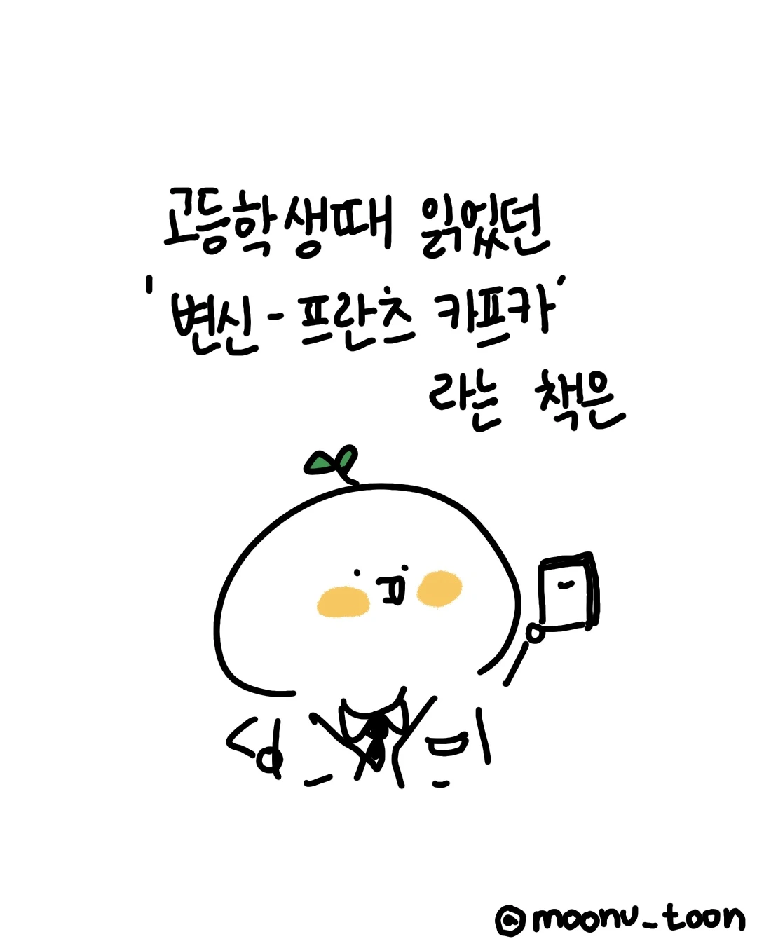 저는 변신이라는 책을 고등학교 때 처음 접했어요. 표지에 삽화도 없고 해서 읽을까 말까 하다가 얇으니 읽어보자 했던 게 기억이 나요.