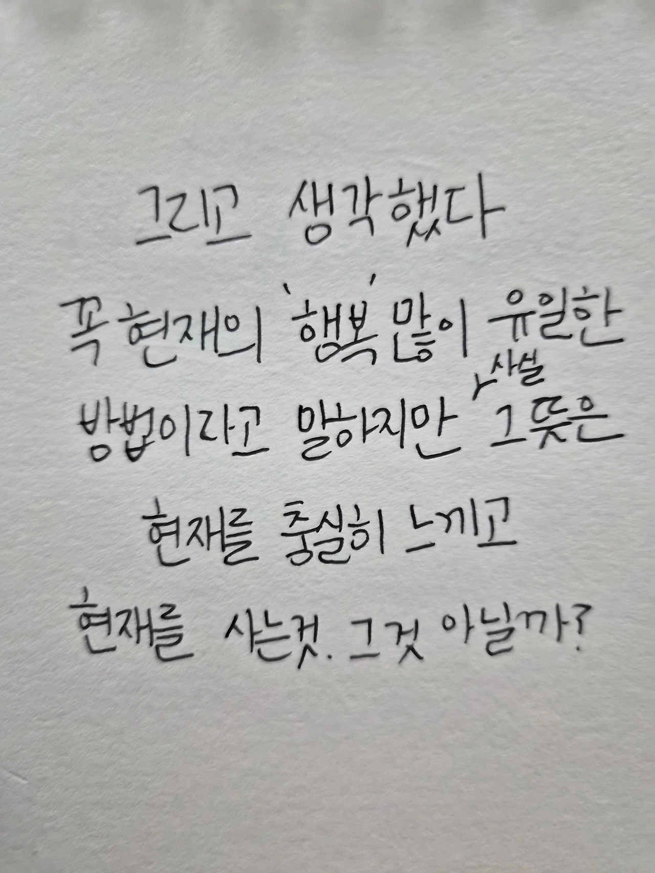 그런데요 저는 생각해요. 꼭 현재의 행복. 많이 그리움을 이기는 방법이라고 하지만. 더 넓게 표현해서 사실은 현재를 충실히 살고. 느끼는 것. 그게 그리움을 이기는 방법 아닐까 하고요.
