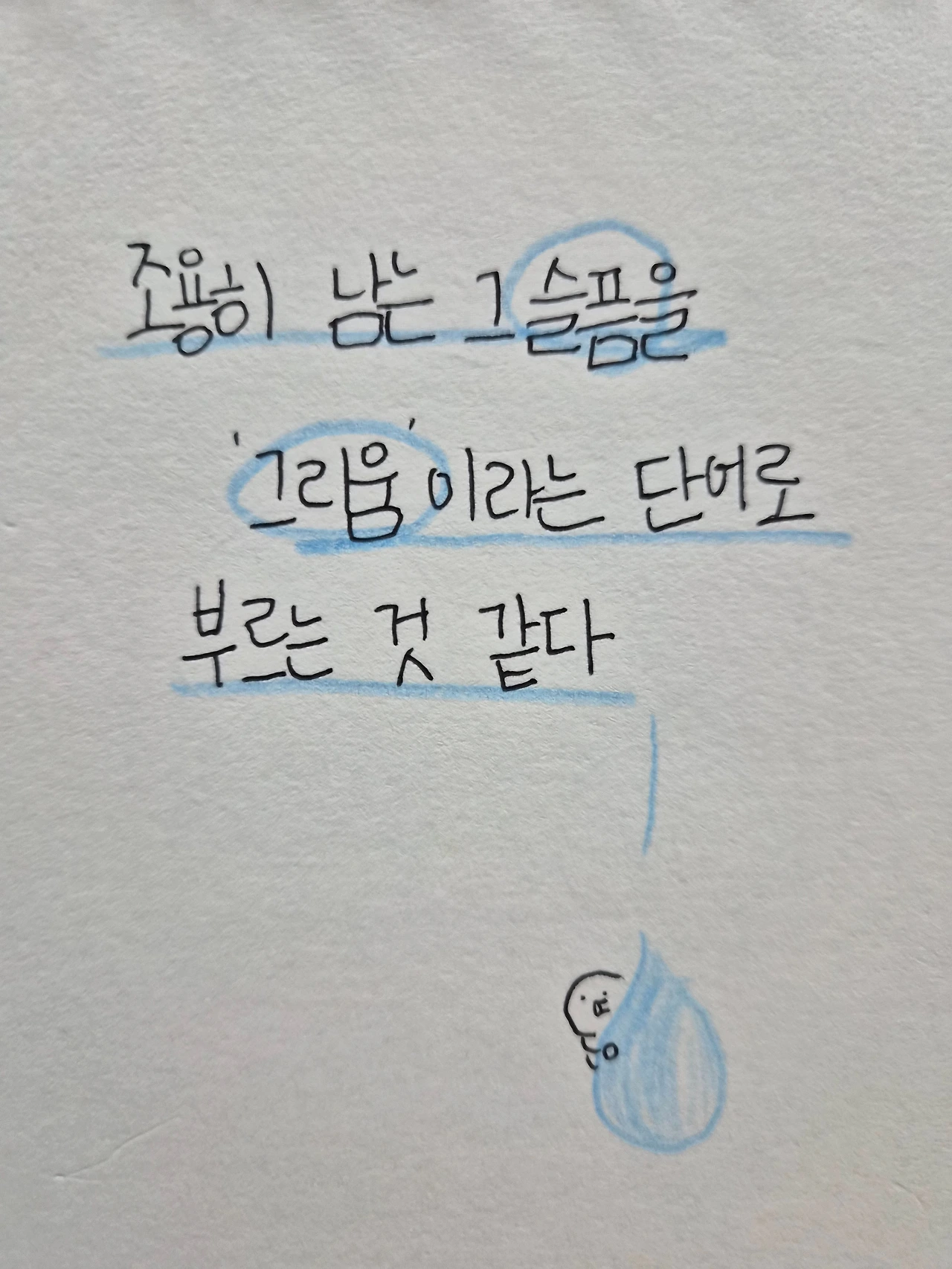조용히 남는 슬픔을 '그리움'이라는 단어로 부르는 것 같다고 생각이 들었어요.