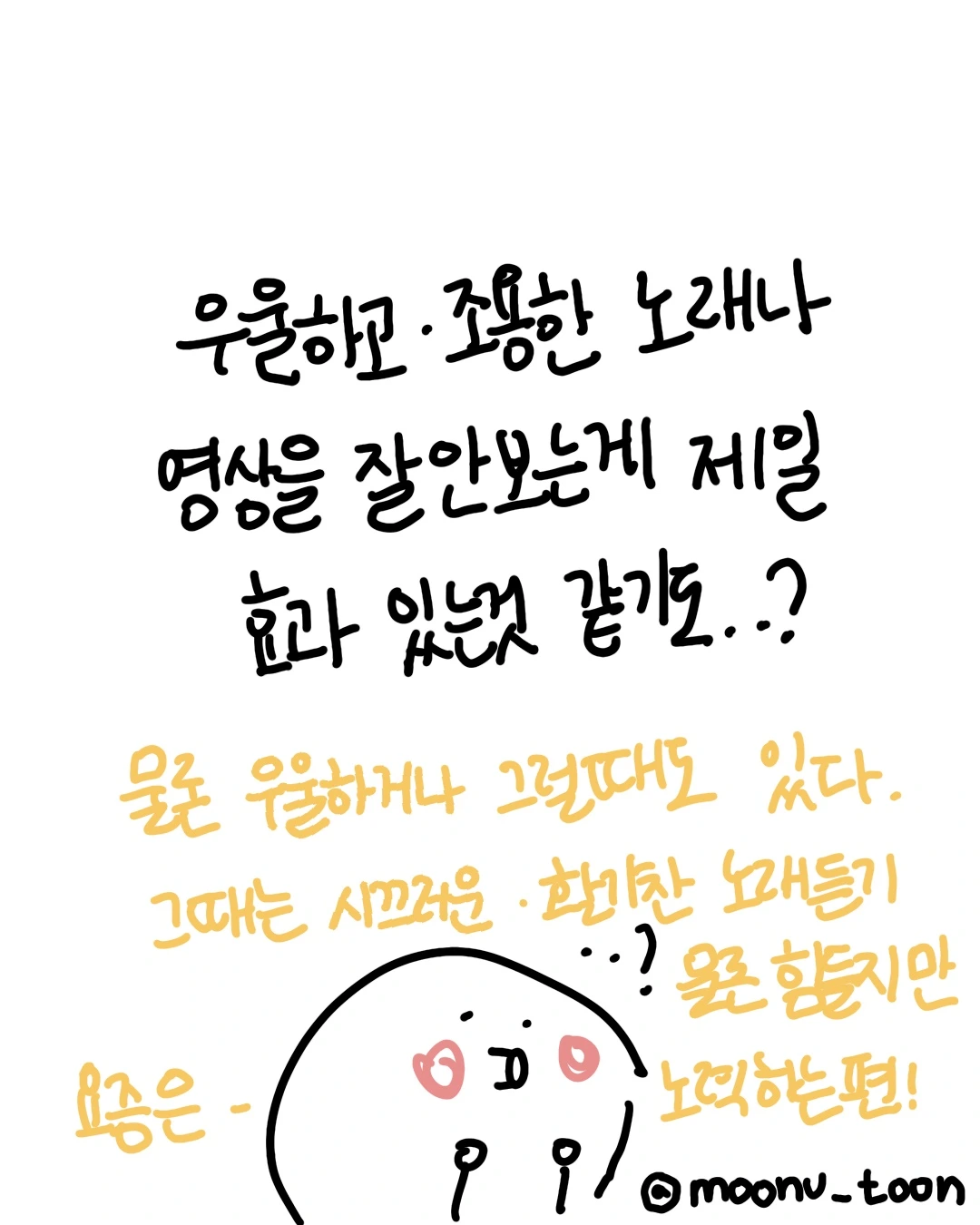 그래서 요즘은 노래나 영상을 조용한 거나 슬픈 감성이 있는 것들을 안 보려고 노력 중입니다