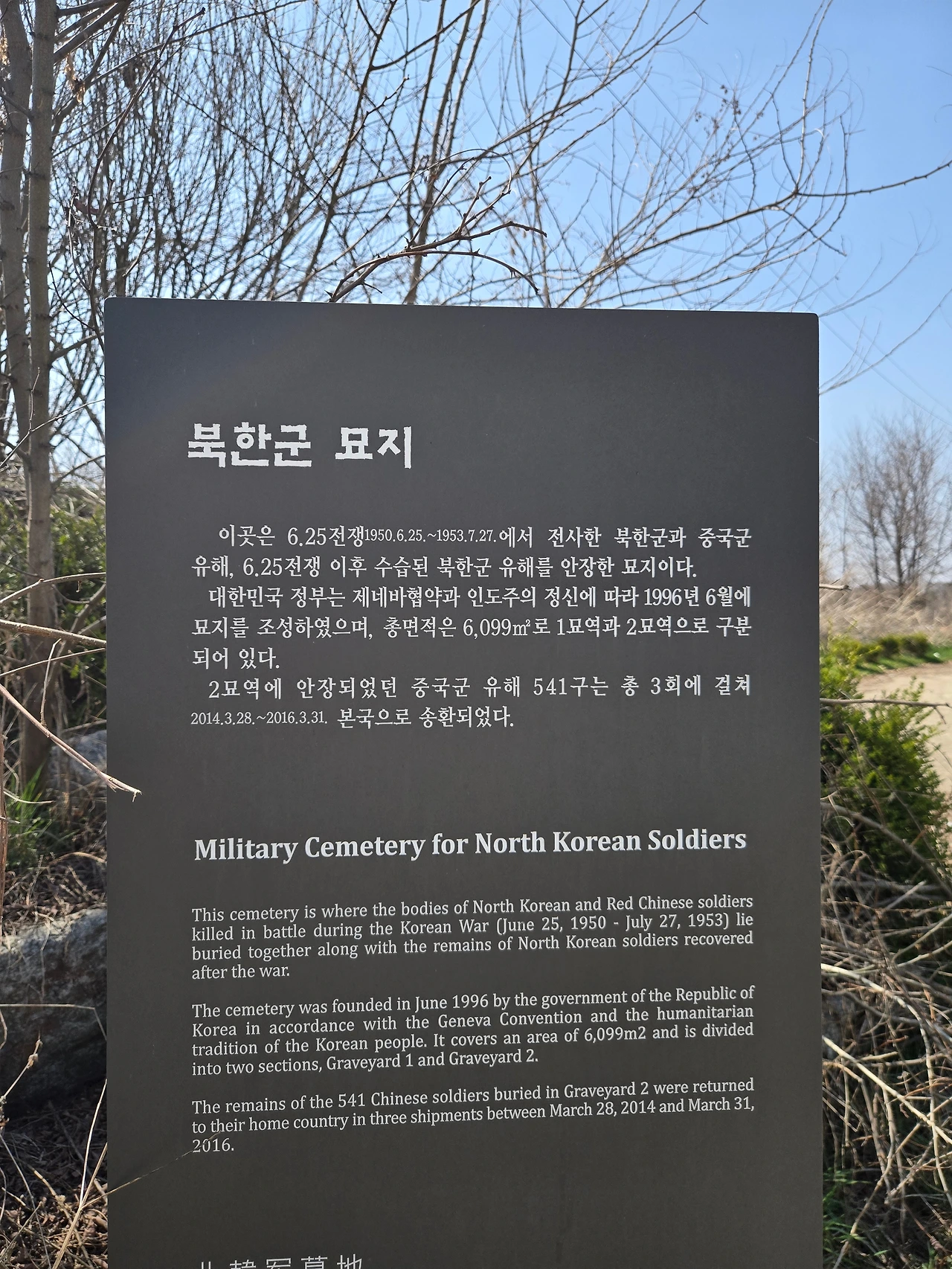 그럼에도 우리는 예를 갖춰 북한군의 묘는 고향땅을 볼 수 있는 북향 쓰고 있다니 씁쓸했다.