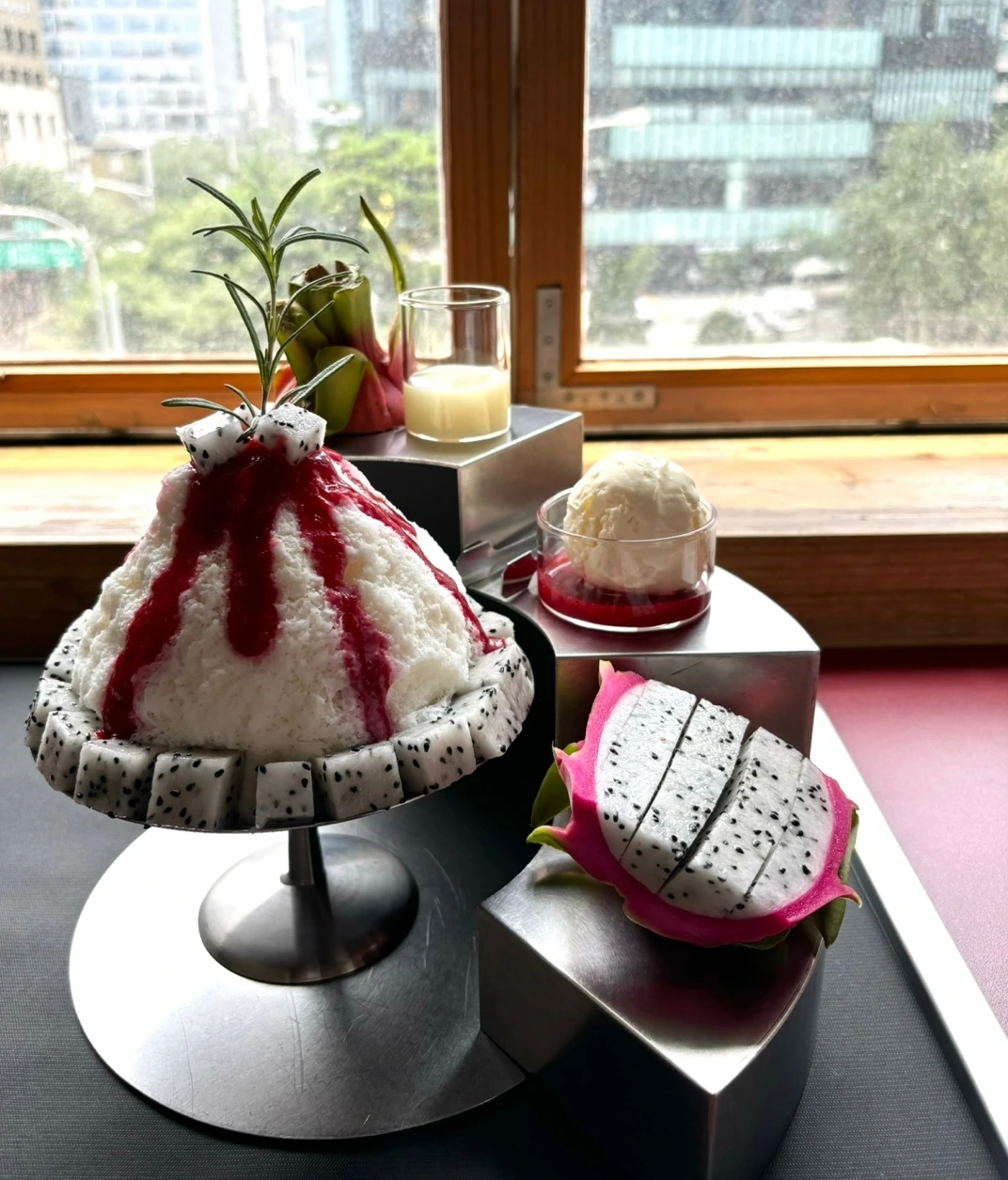 들어가자마자 주문한 용과빙수는 디자인적으로 훌륭한 느낌이었는데, 예술작품 같으면서도 건축적으로 멋있다고 느껴지는 비주얼이었다.