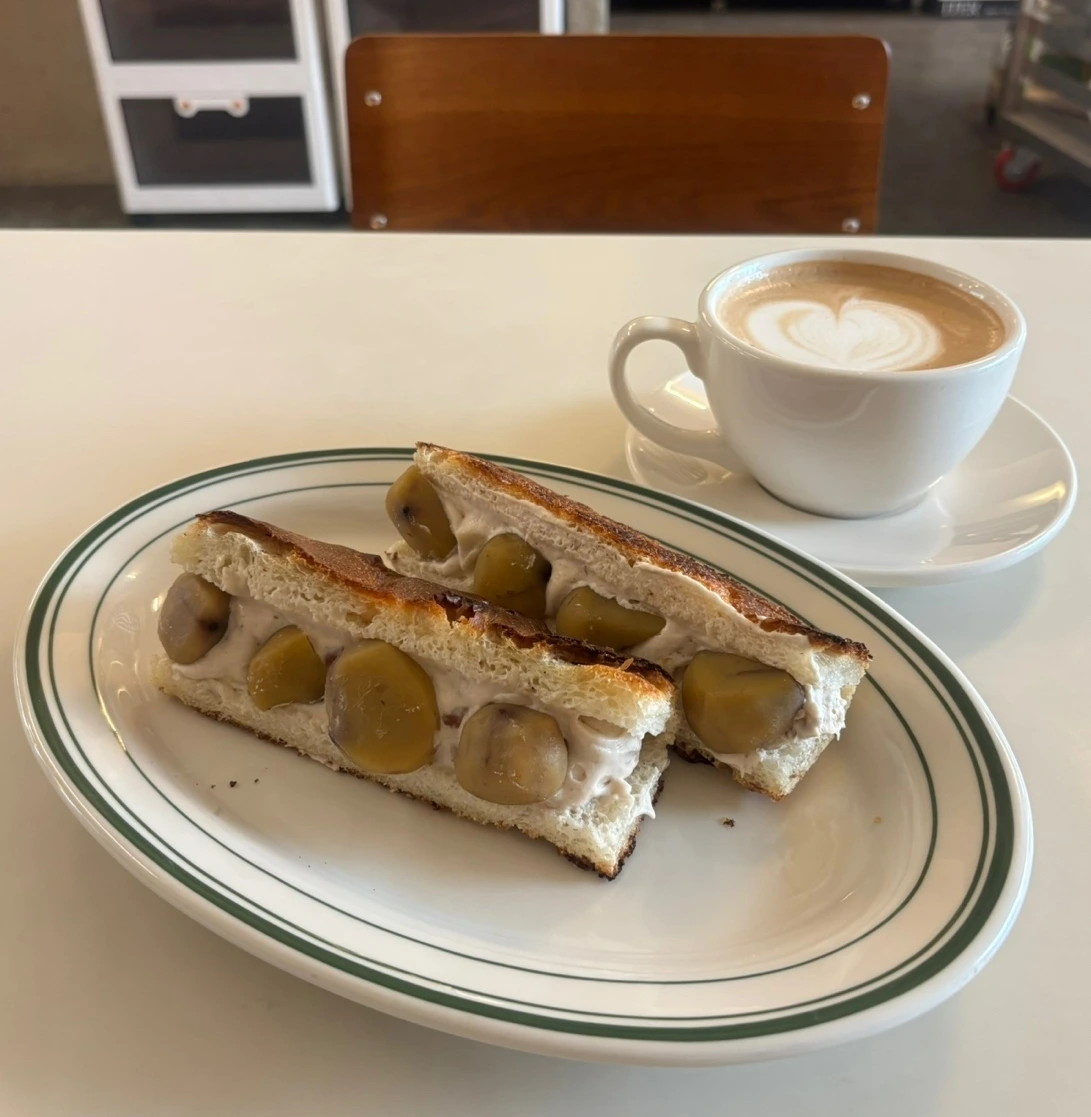 점심은 샌드위치, 저녁은 와인바로 운영되는데, 점심 샌드위치 메뉴에는 식사로 좋은 건강한 조합들도 가득하지만 가장 특색있었던 건 디저트 느낌의 밤 크림 샌드위치다.