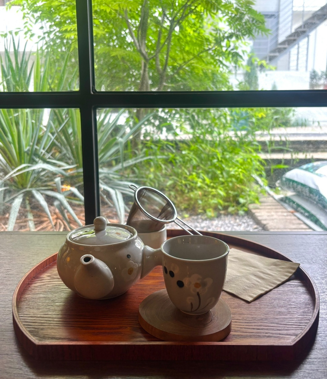 메뉴도 흔치않은 차 종류가 많아서 처음 먹어보는 과일향의 홍차로 골랐는데, 주문한 홍차는 다도세트처럼 찻잔과 찻주전자, 거름망을 한세트로 주셔서 더 차분하게 공간과 함께 차를 온전히 즐길 수 있었다.