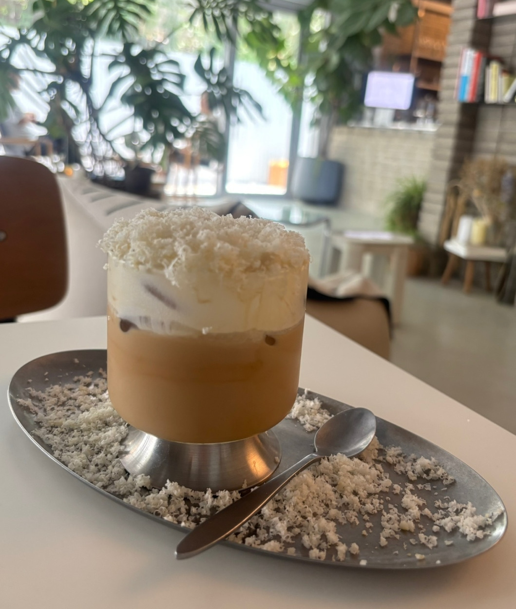 시그니처 메뉴 중 마카디미아 라떼를 주문했는데, 마카다미아향 가득한 라뗴 위에 크림이 가득 올라가고, 채로 갈아서 치즈처럼 올라간 마카다미아까지 더해져서 비주얼이 특색있었다.