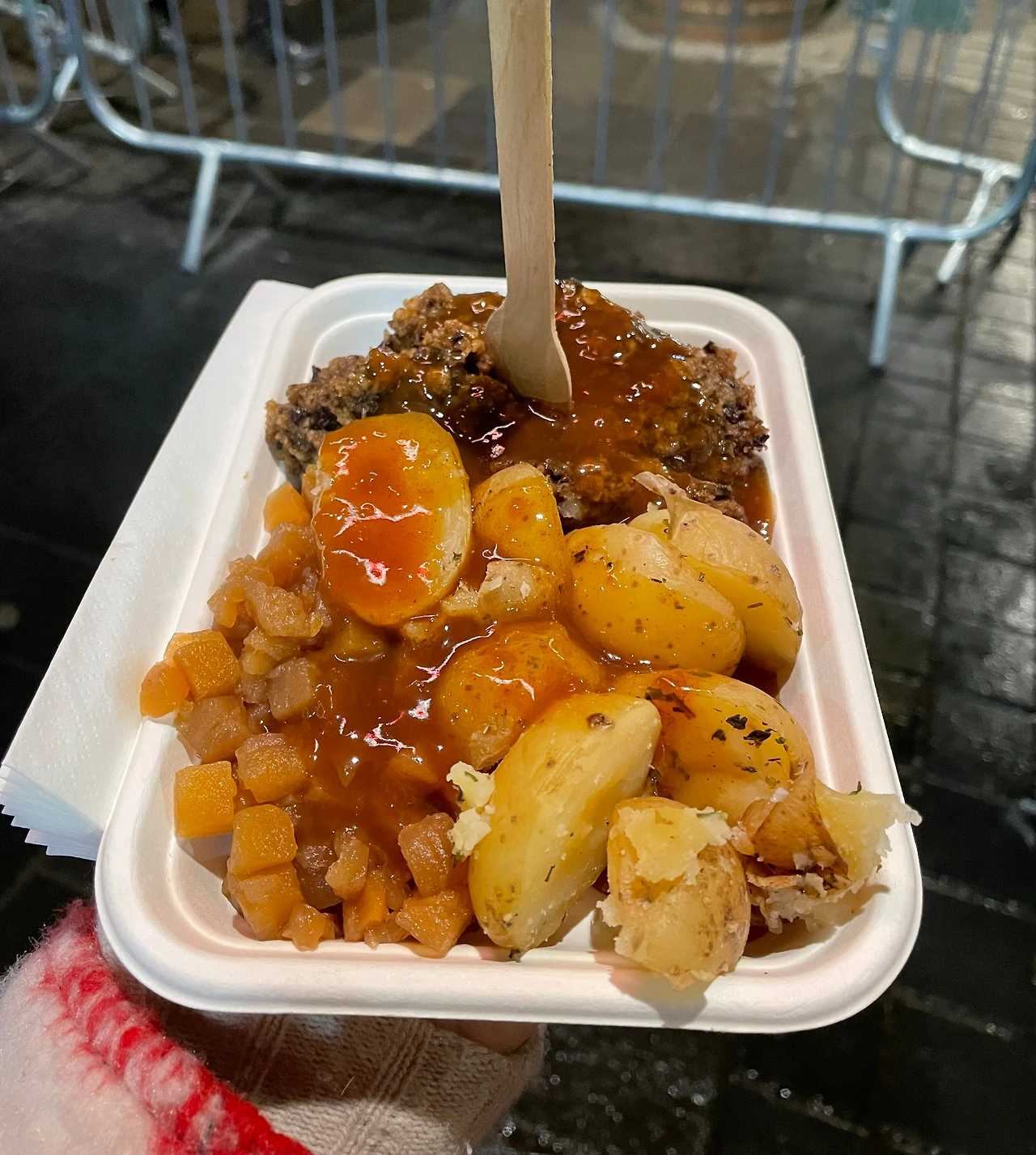 에든버러에서 크리스마스 시즌에 열린 크리스마스마켓에서 사먹은 하기스로 딱 꾸밈없는 정석적인 스코틀랜드의 하기스다.