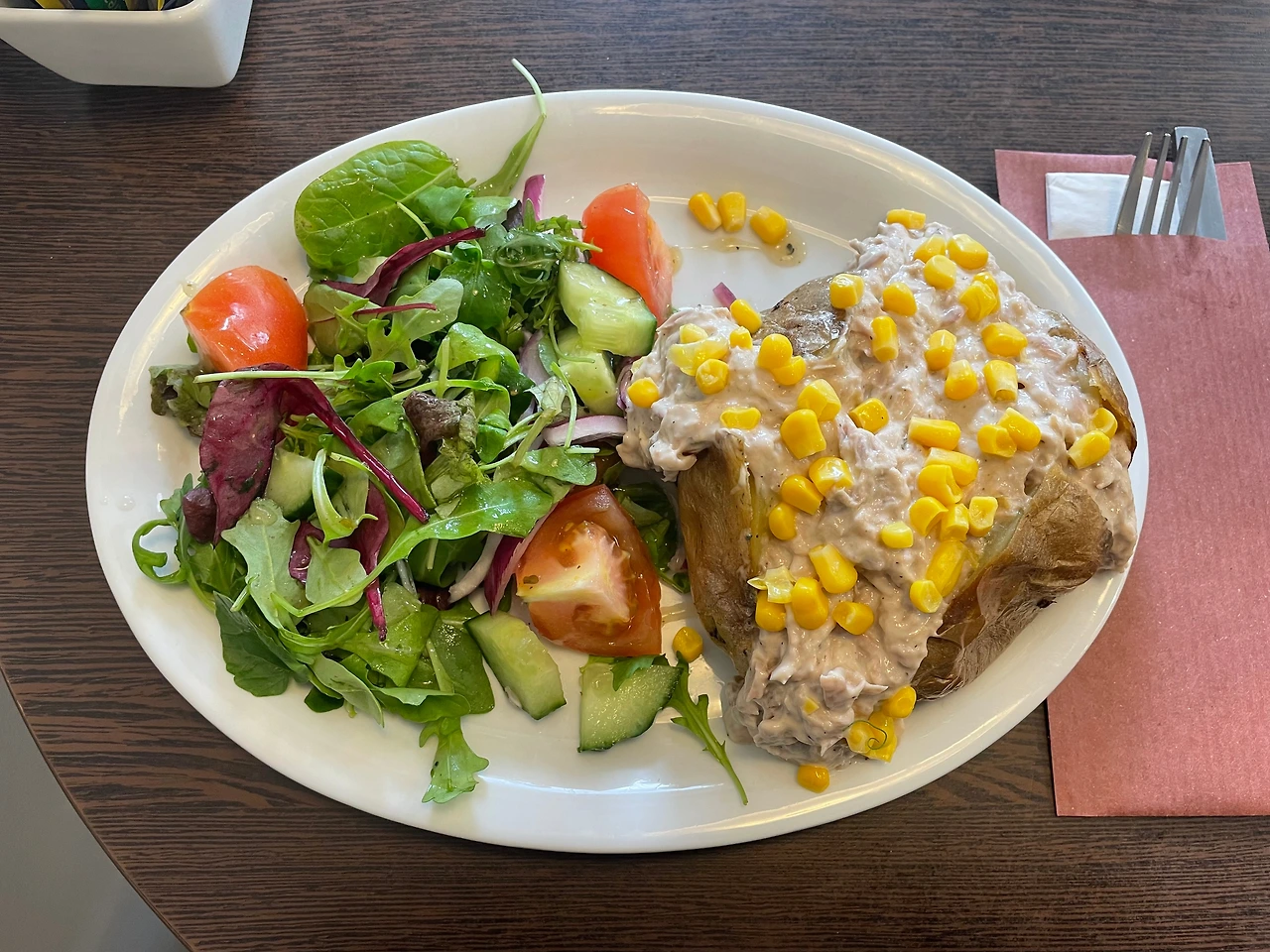 그중에서도 가장 맛있게 먹은건 참치와 옥수수가 한가득 들어간 튜나 자켓 포테이토였는데, 참치샌드위치가 생각나는 참치 가득한 맛에 옥수수까지 더해져서 정말 빵 대신 감자로 만든 튜나 샌드위치를 먹는 기분이었다. 거기다 샐러드도 한가득 나와서 건강하면서 든든하게 한끼 먹은 기분에 속도 편하고, 맛있게 배불렀다.