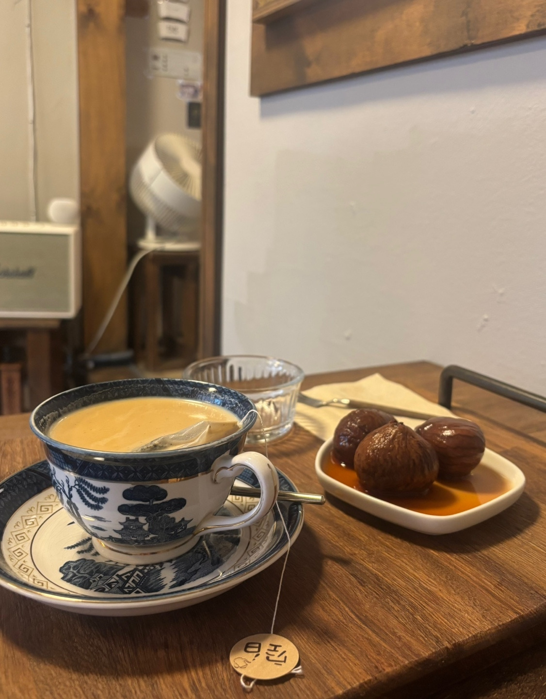 가장 유명한 메뉴는 로스터리 커피인데, 갑자기 밀크티가 땡겨서 밀크티를 주문했지만 밀크티도 로스터리커피 못지 않게 향긋한 맛이 좋았다. 밀크티는 시중의 흔한 달콤한 밀크티가 아니라 사장님이 직접 티백을 우리셔서 우리가 직접 원하는 만큼 설탕을 타먹으면 되는 특색있으면서 밀크티 본연의 맛이 살아있는 맛이어서 기대 이상으로 만족스러웠다. 개인적으로는 영국에서 마시던 홍차에 우유타먹던 맛이 생각나서 더 맛있게 먹었다.