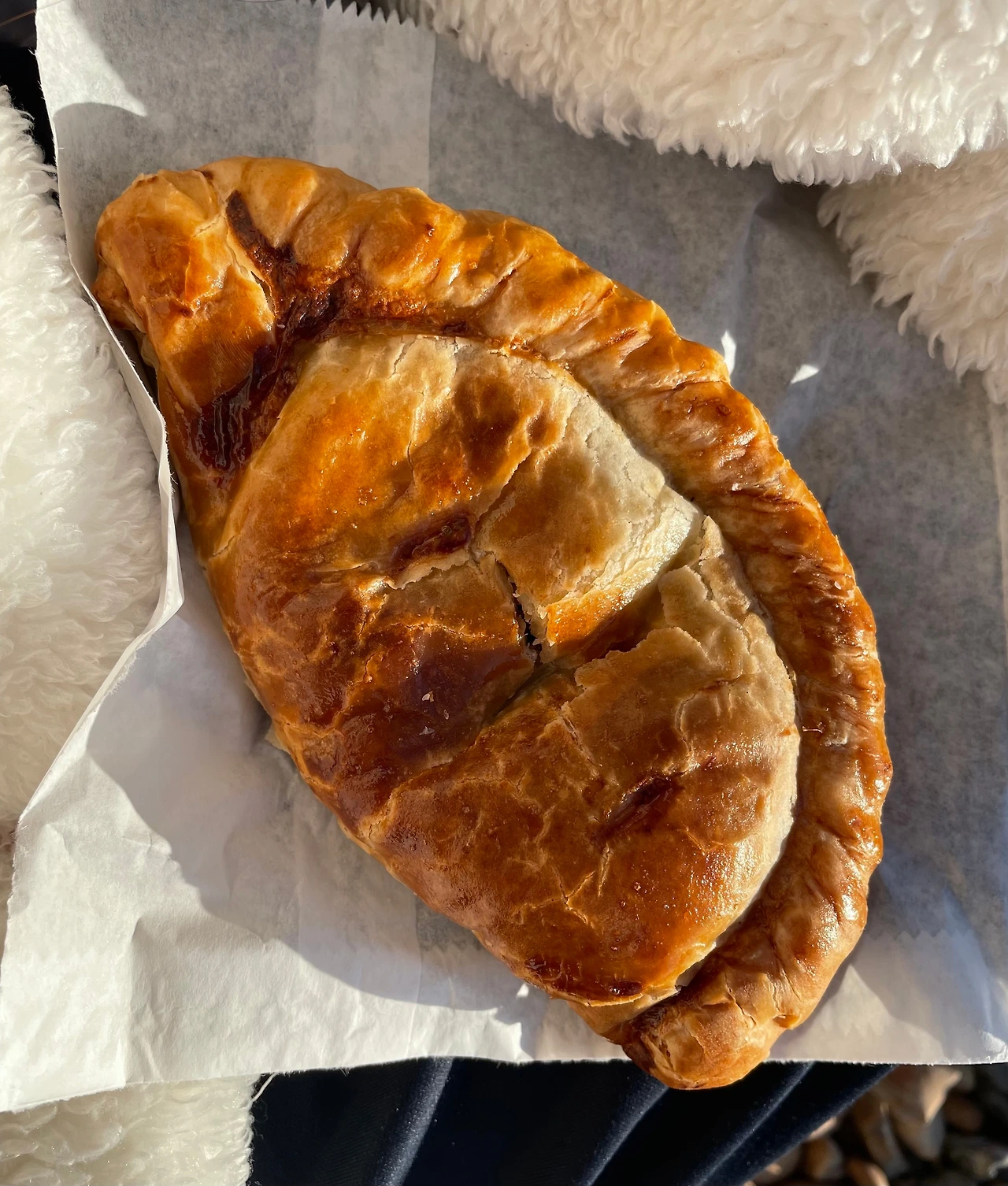 만두와 비슷한 느낌으로 미트파이와 만두의 중간단계이다. 파사사사삭 부서지는 빵피 안에 고기로된 소가 가득 들어있는데, 콘웰지역에서 시작되어서 콘웰파이 라는 뜻의 Cornish Pasty라 불린다.