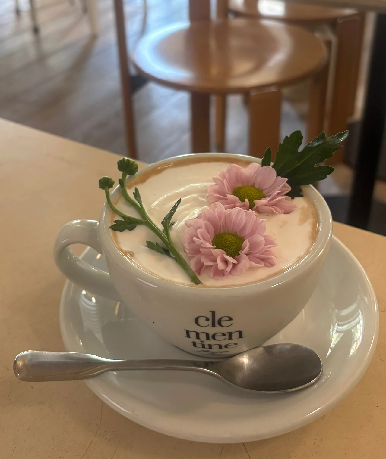 이곳의 시그니처는 예쁜 꽃이 크림 위에 한가득 올라간 플라워라떼인데, 꽃은 전부 생화로 크림 위에 더해지니 핀터레스트에 나올 것 같은 비주얼이라 먹기 아까울 정도로 예쁘다.
