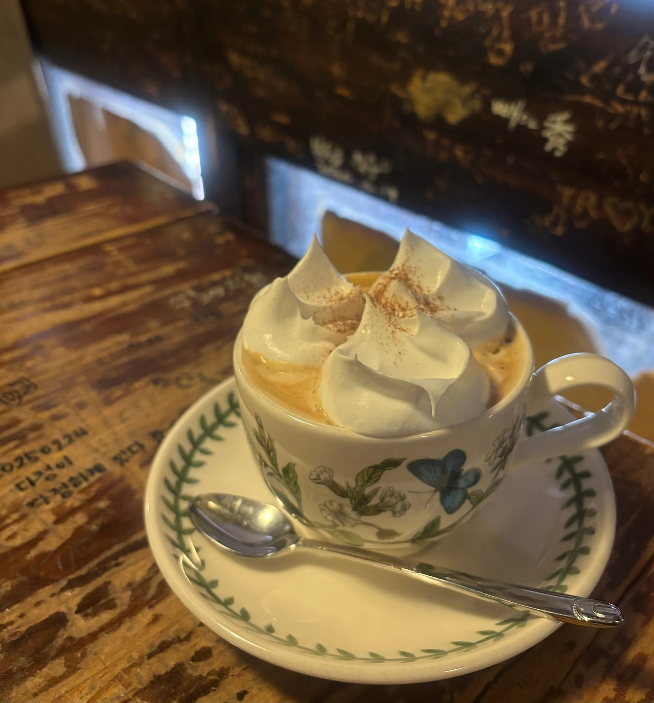 입구부터 레트로한데, 매장 내부도 여러 낙서가 적혀있는 테이블과 벽, 삐걱거리는 계단, 진열된 각종 컵과 다양한 소품들이 한데 어울어져 시간여행을 하는 듯한 기분을 들게 한다.