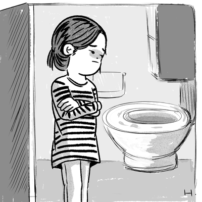 잠깐, 화장실만 좀 쓸게요. 근데... 변기 위에 저거 뭐예요?