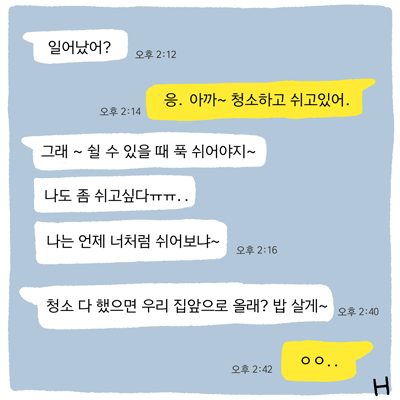 “야! 속 편한 소리 그만해. 쉴 때가 좋은 거야.