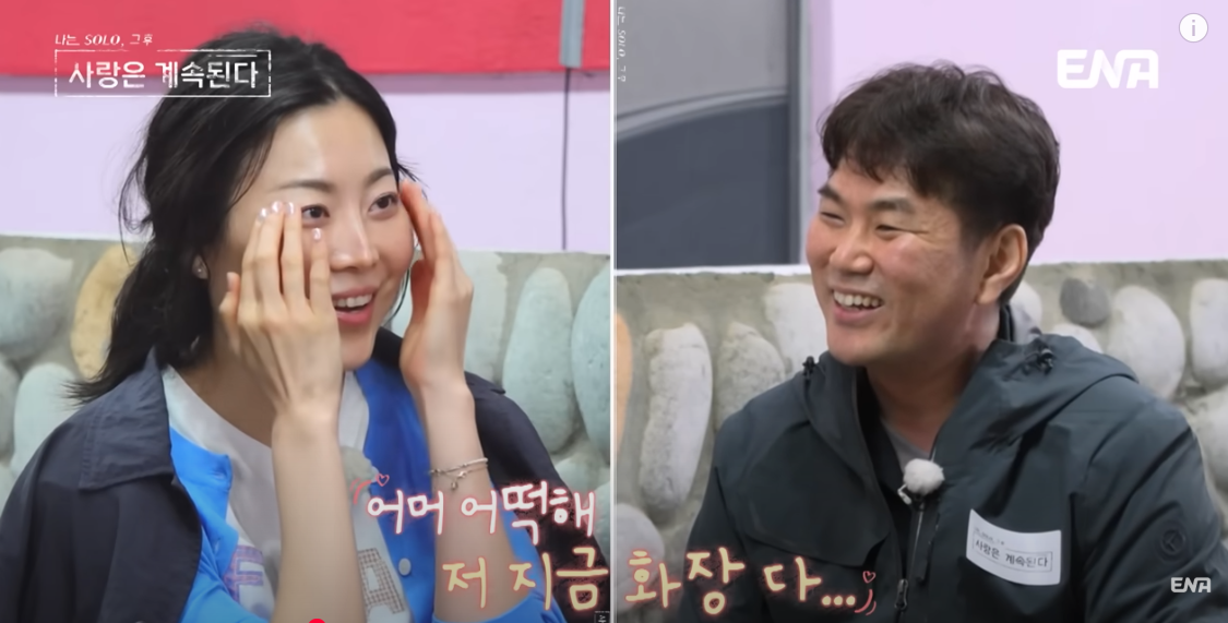 사람은 누울 자리를 보고 다리를 뻗는다. 25기 옥순은 마음가짐도 달리하고 나왔지만, 자신의 여성성을 마음껏 드러낼 수 있는 대상을 만났기 때문에 쑥스러워하면서도 귀엽게 생글거리며 적극적이어 질 수 있는 것이다. 위의 사진을 보면 두 사람의 표정과 태도, 눈빛과 같은 비언어적인 메시지가 서로에게 얼마나 달달한지 알 수 있다. 만약 이번에도 직업은 좋으나 사회적인 애티튜드가 미숙한 남성들을 만났다면, 아무리 25기 옥순이 결의를 다지고 나왔다고 하더라도 고행의 길이 되었을 것이다. 결국 서로가 준비되었을 때 서로의 가치를 알아본다.