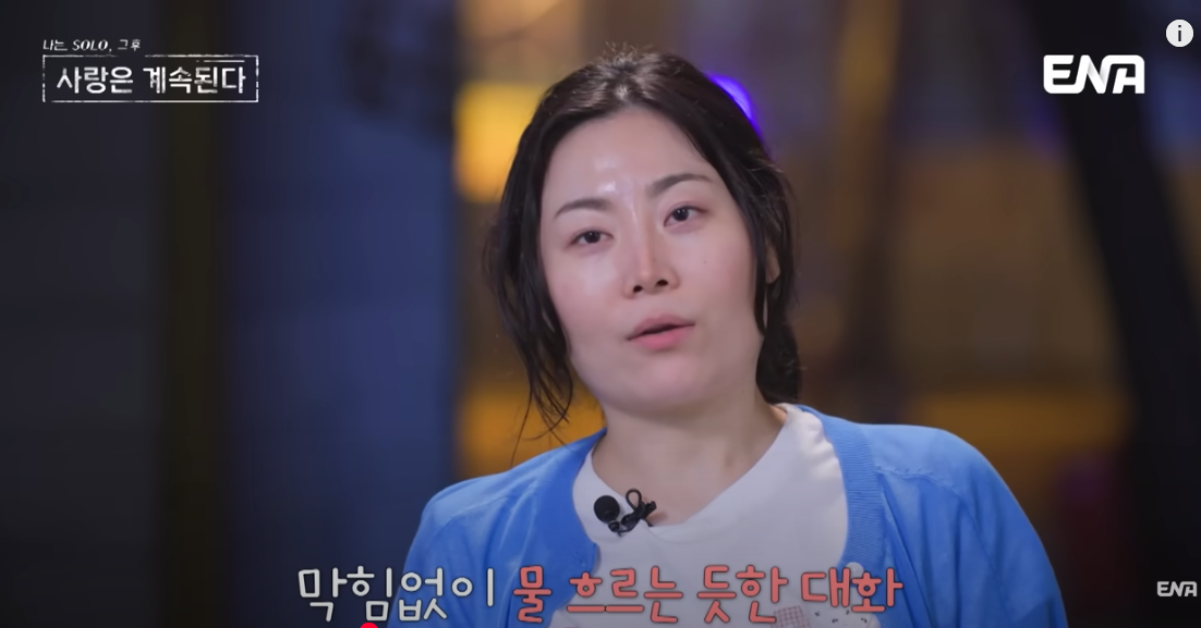 25기 옥순도 미스터 윤을 만나 다리를 뻗을 수 있겠다 싶으니 한껏 여성미를 발산한 것이라 본다. 또한 그러한 모습을 미스터 윤은 ‘좋아요’, ‘좋다’라는 말로 계속 받아주고, 응원해 주고, 이쁘다고 표현하니, 25기 옥순은 얼마나 기쁘지 아니한가. 너무 섣부른 기대이지만, 나는 이 커플이 서로 안에 잠재된 엄청난 보석들을 발현시켜 주는 존재가 되기를 바란다. 접었던 다리를 쭉 뻗어 자신들의 숨겨진 이성으로서 매력을 충분히 드러내고 만끽하는 관계로 발전하기를 바란다. 오랜만에 참 보기 좋은 성숙된 연인을 본 것 같아 흐뭇하다.