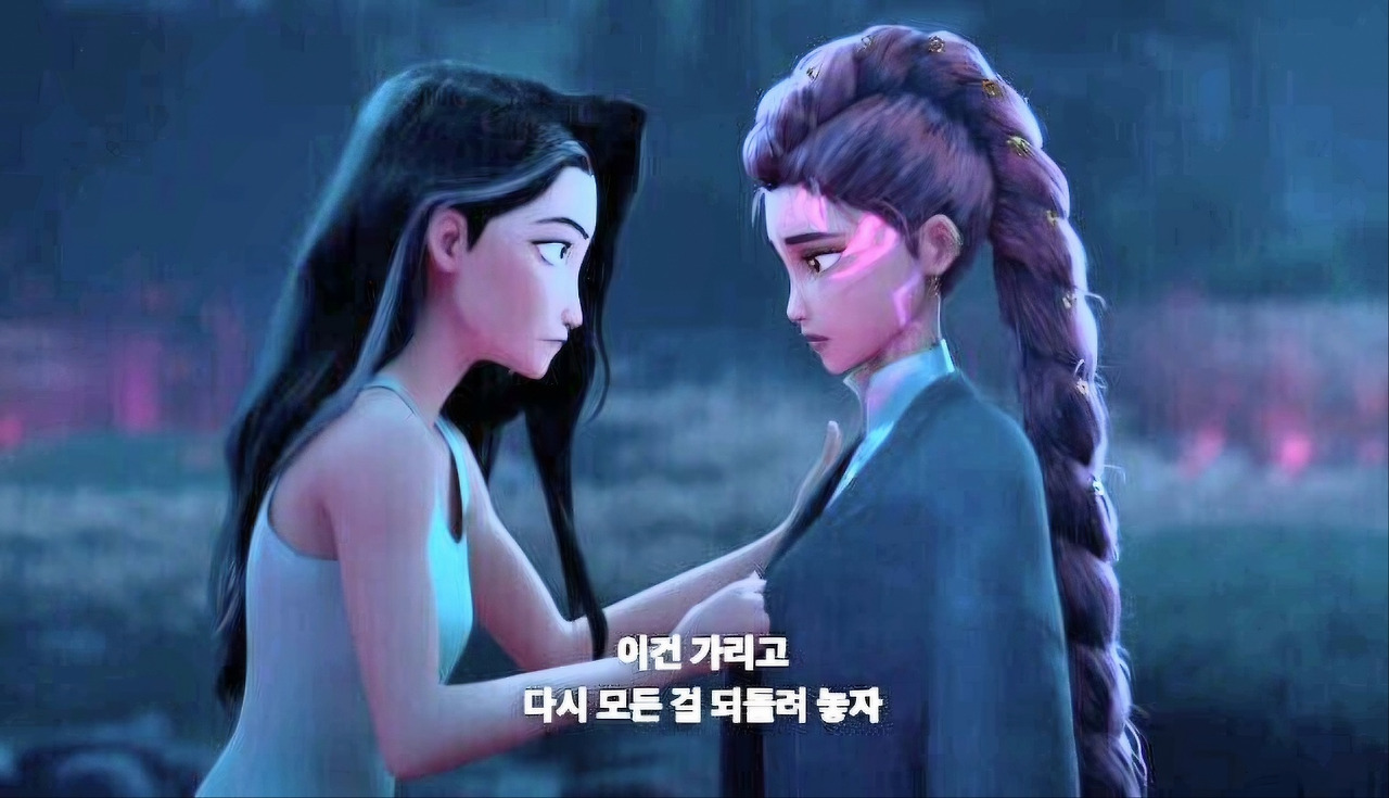 케데헌을 보며, 사람들은 결점이나 두려움과 같은 부정적인 자신의 모습도 있는 그대로 수용하고 사랑해야 한다고 영화의 주제를 이해하는 경우가 많다. 또한 이 영화의 메시지를 물어보는 질문에 루미역의 성우를 맡은 배우 아덴 조Arden Cho 또한 자신을 있는 그대로 드러내고 받아들이는 '자기수용'이라고 인터뷰에서 설명했다. 하지만 나는 루미가 셀린의 사랑을 확인하지 못한 채 처절하게 홀로 일어나 “what it sounds like” 노래를 부르며 귀마를 무찌르고 혼문을 재건할 때, 참으로 마음이 아프고 불편했다. 다문화적인 키워드가 강한 미국에서 자신을 있는 그대로 드러내고 수용받는 ‘자기수용’이라는 메시지는 현시점에 매우 시의적절하다. 하지만 필자는 상담자로서 내담자인 루미의 입장에서 보았을 때, 이러한 결말은 상처받은 자에게 구원자 역할을 맡기는 서사의 잔인함이다. 처절하게 수백만 조각으로 부서진 주인공이 열악한 상황과 냉대에도 불구하고 홀로 분연히 일어나 자신을 세우고 세상의 구원자가 되는 강요된 정신승리의 불편한 서사다. 루미는 그저 조건 없는 사랑을 받고 싶은 아이다. 헌터의 자손이라는 특별한 출생과 감동을 주는 목소리라는 엄청난 능력을 떠나, 그저 아이돌 연령대의 여자 아이다. 루미는 셀린에게 자기를 있는 그대로 수용해 달라고 말하는 것이 아니다. 정말 하고 싶은 말은, 내가 어떤 모습을 가져도 나를 있는 그대로 사랑해 달라는 것이다. 내가 데몬 문양이 있든 없든 그저 나를 사랑해 달라는 것이다.
