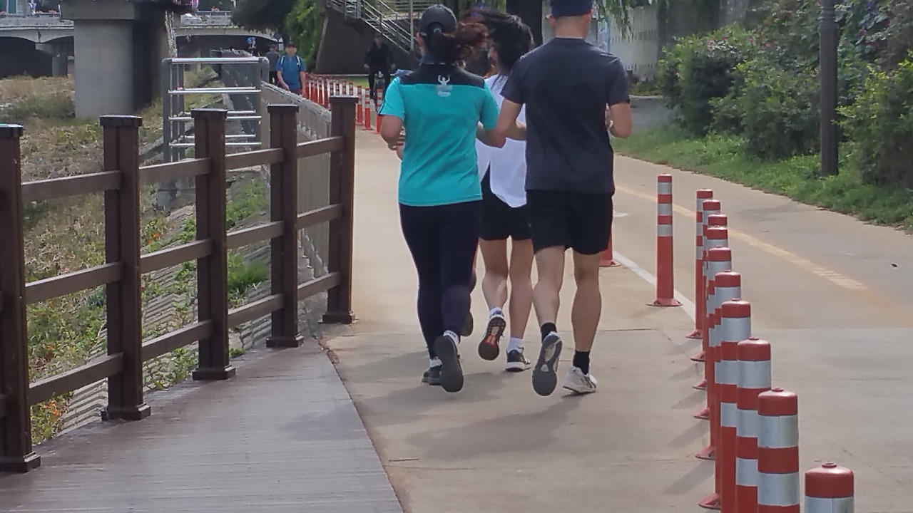 십 키로 남짓 걸은 다리
