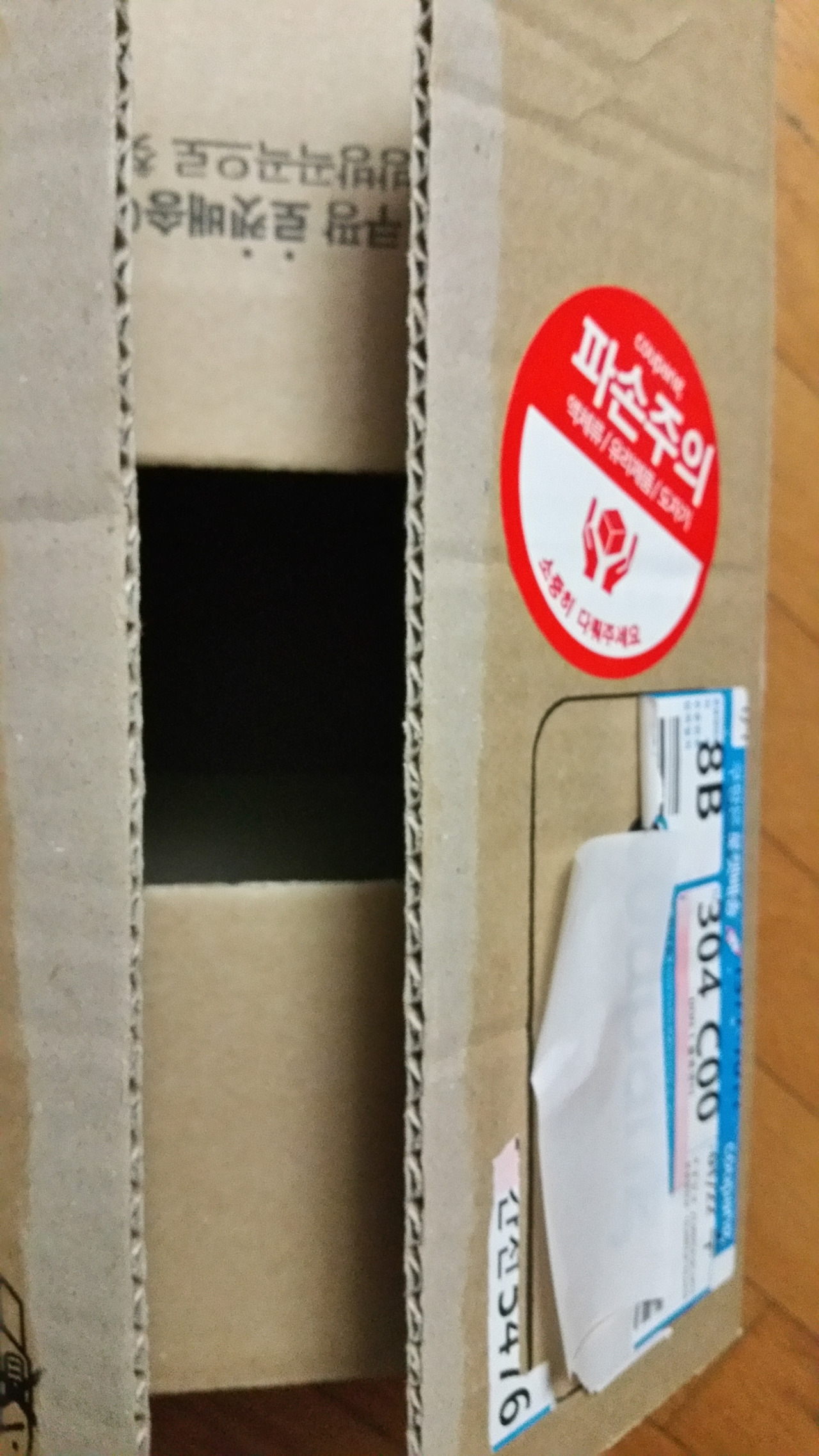 4. 쿠팡은 깨질 가능성이 있는 물건이 든 상자에는 스티커를 붙인다. 배송 시 섬세하게 다뤄 달라는 표시다. 덕분에 오늘 배송받은 물건 중에 파손된 물건은 없었다.
