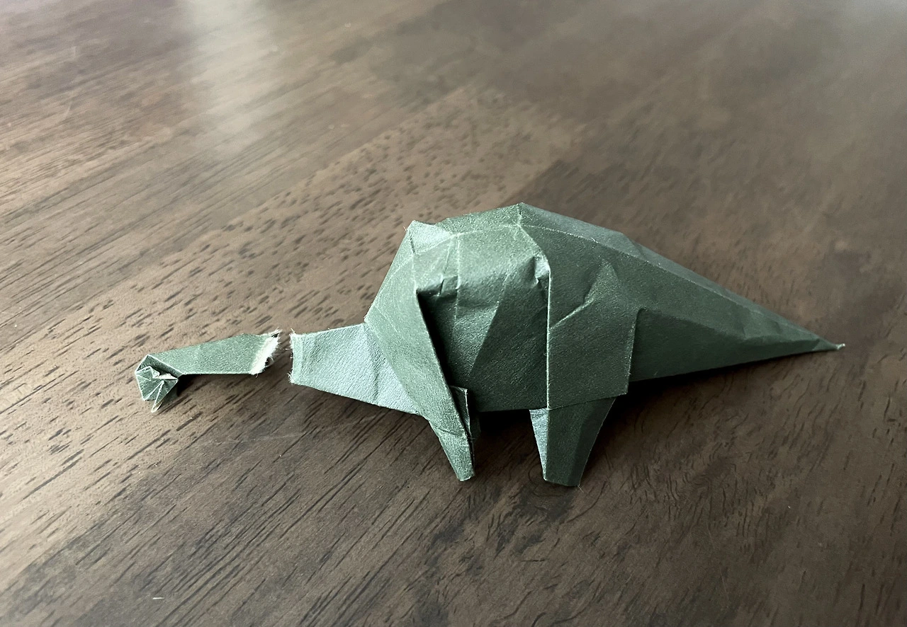 우리는 반으로 동강난 종이공룡을 바라보며 약 2초간 침묵하다 동시에 빵- 웃음을 터트렸다. 허탈한 웃음으로 공룡(이었던 것)을 내려다보는 남편을 향해 나는 깔깔거리며 “시작이 반이라더니, 진짜 반으로 만들어버렸네!”라고 외쳤다. 유튜브를 시작하게 된다면 이 부분을 꼭 쇼츠로 만들어 ‘시작이 반이다’라는 제목을 붙이라는 말과 함께.